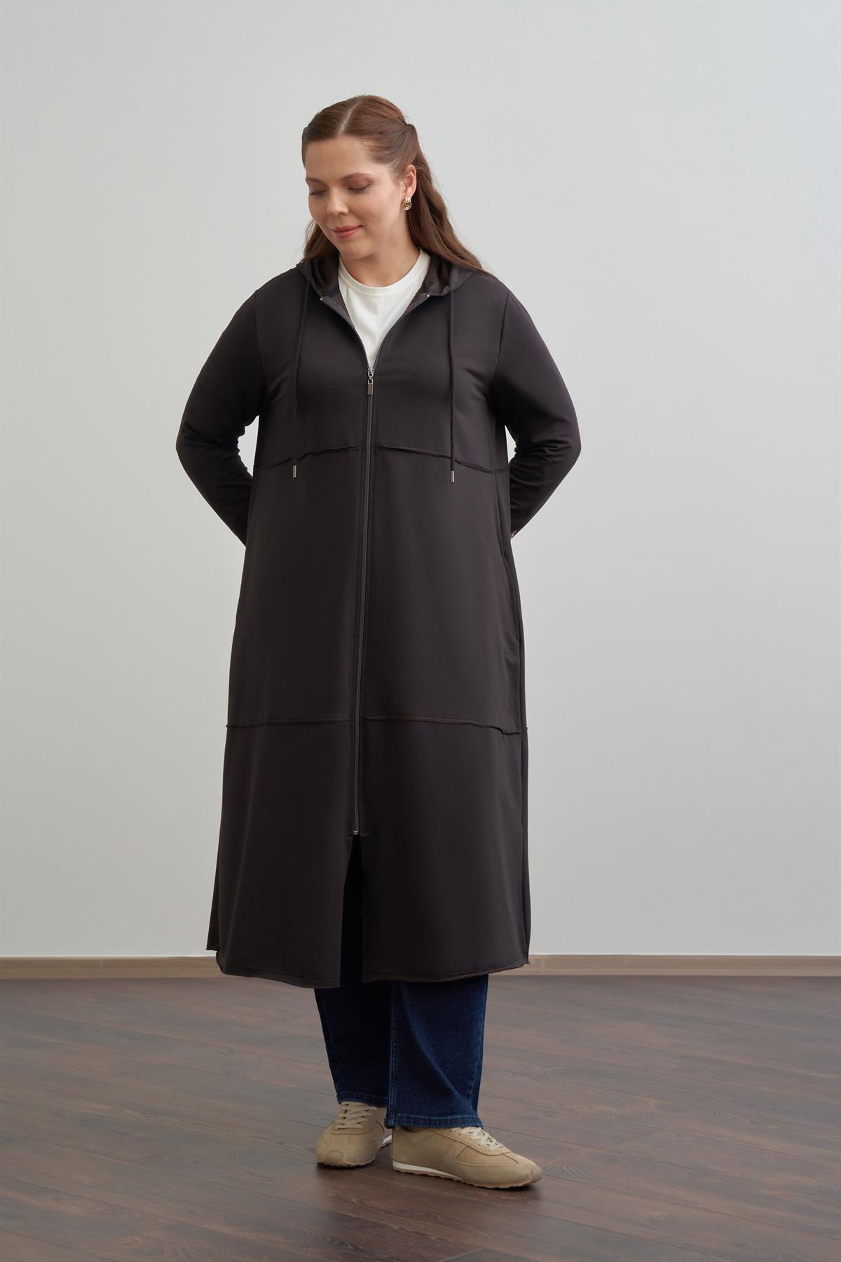 Acı Kahve-Büyük Beden Pis Dikişli Fermuarlı Likralı Hırka (21OB93009AL9)