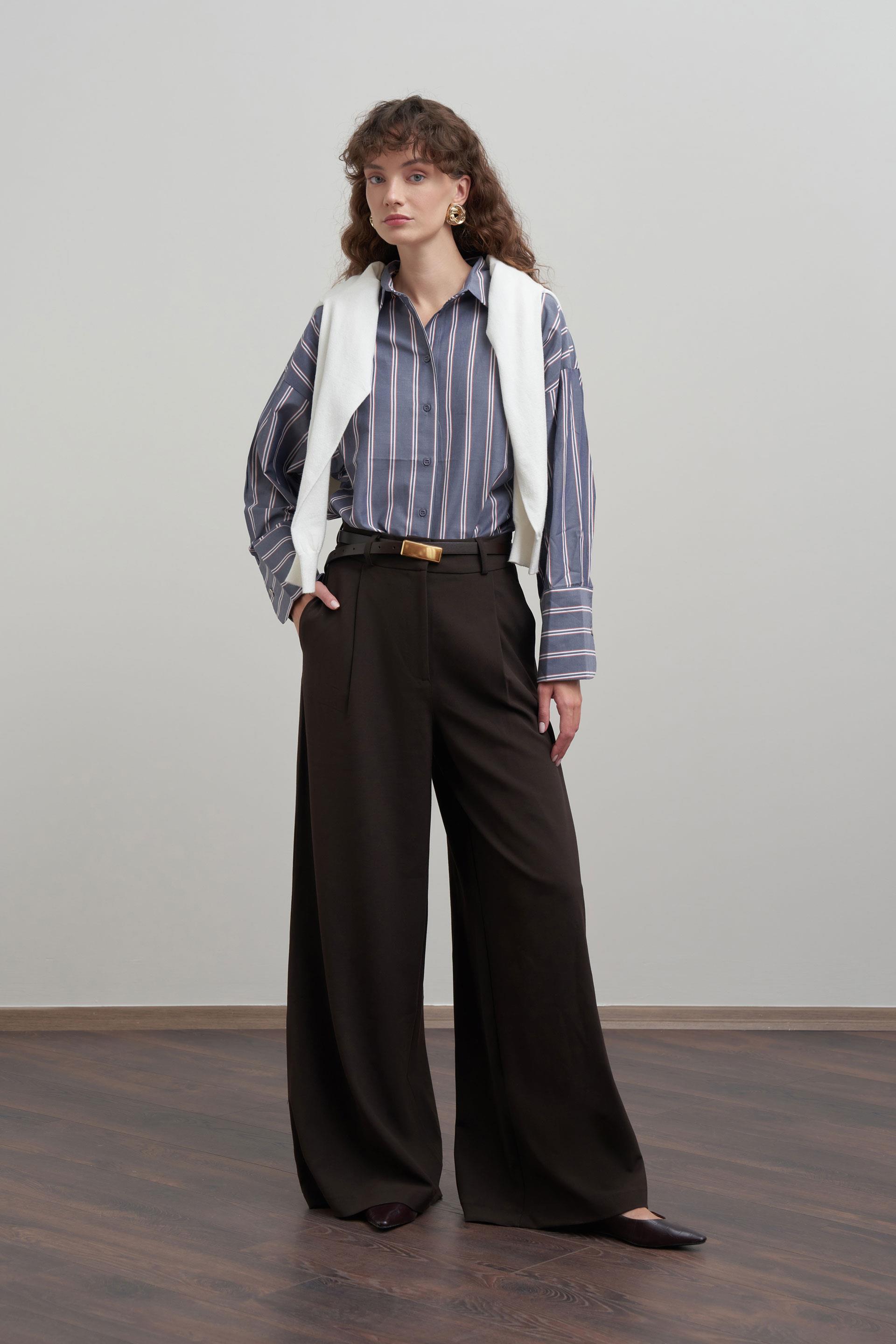 Acı Kahve-Pileli Polyviscon Pantolon