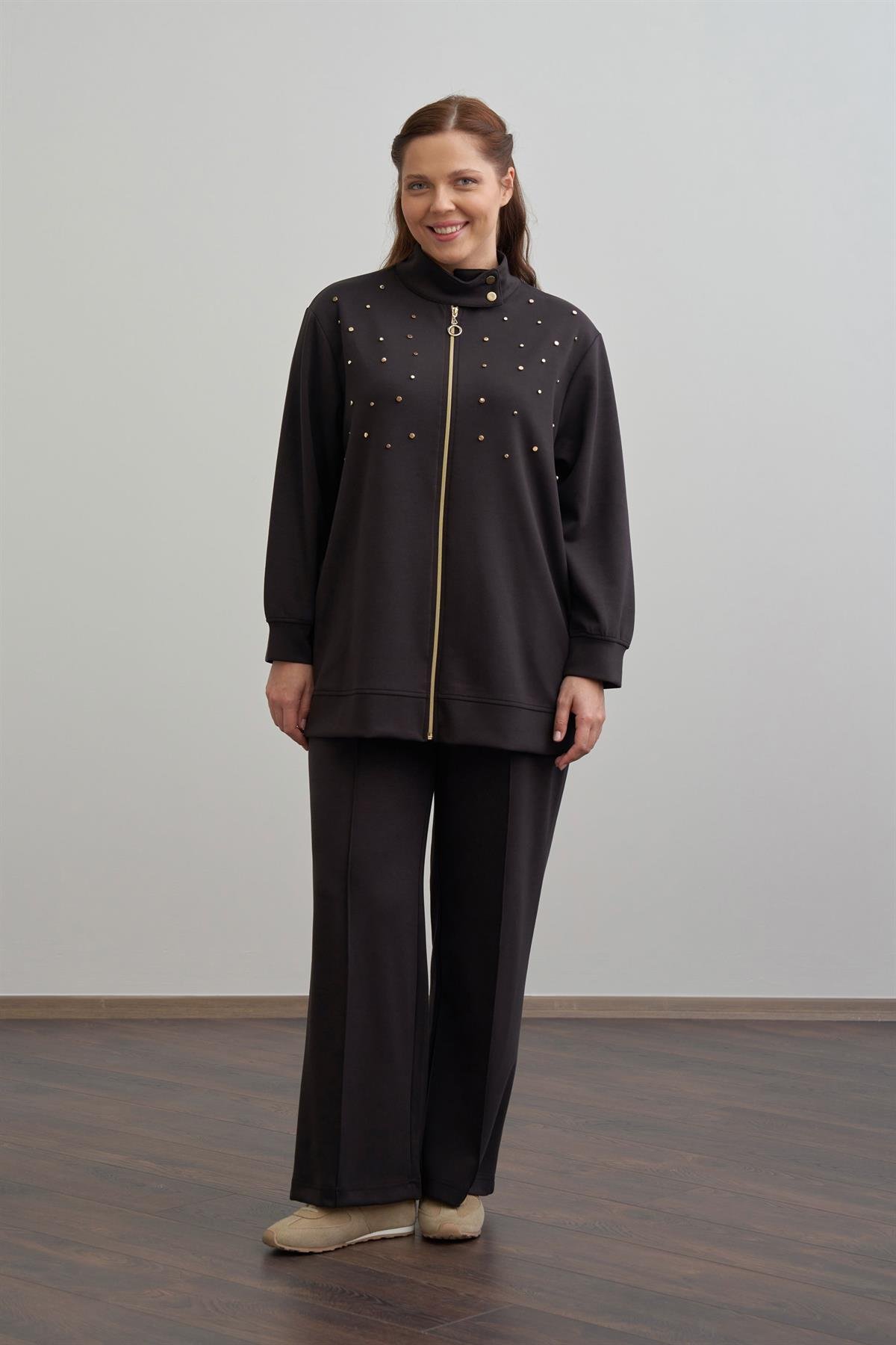 Acı Kahve-Yumuşak Dokulu Büyük Beden Droplu Eşofman Takımı (B31090A9)