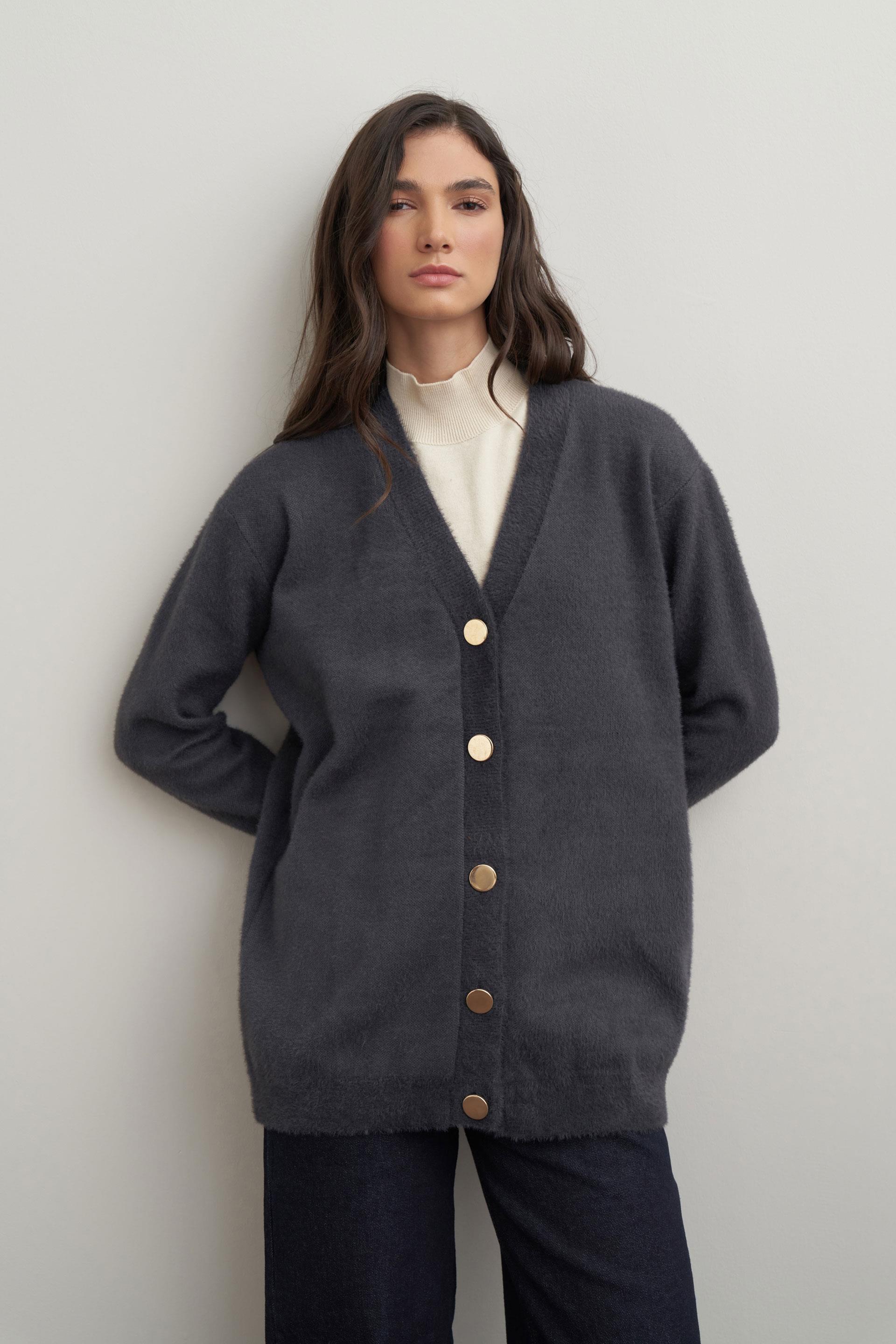 Antrasit-Dügmeli Yumuşak Triko Hırka (W93101A0)