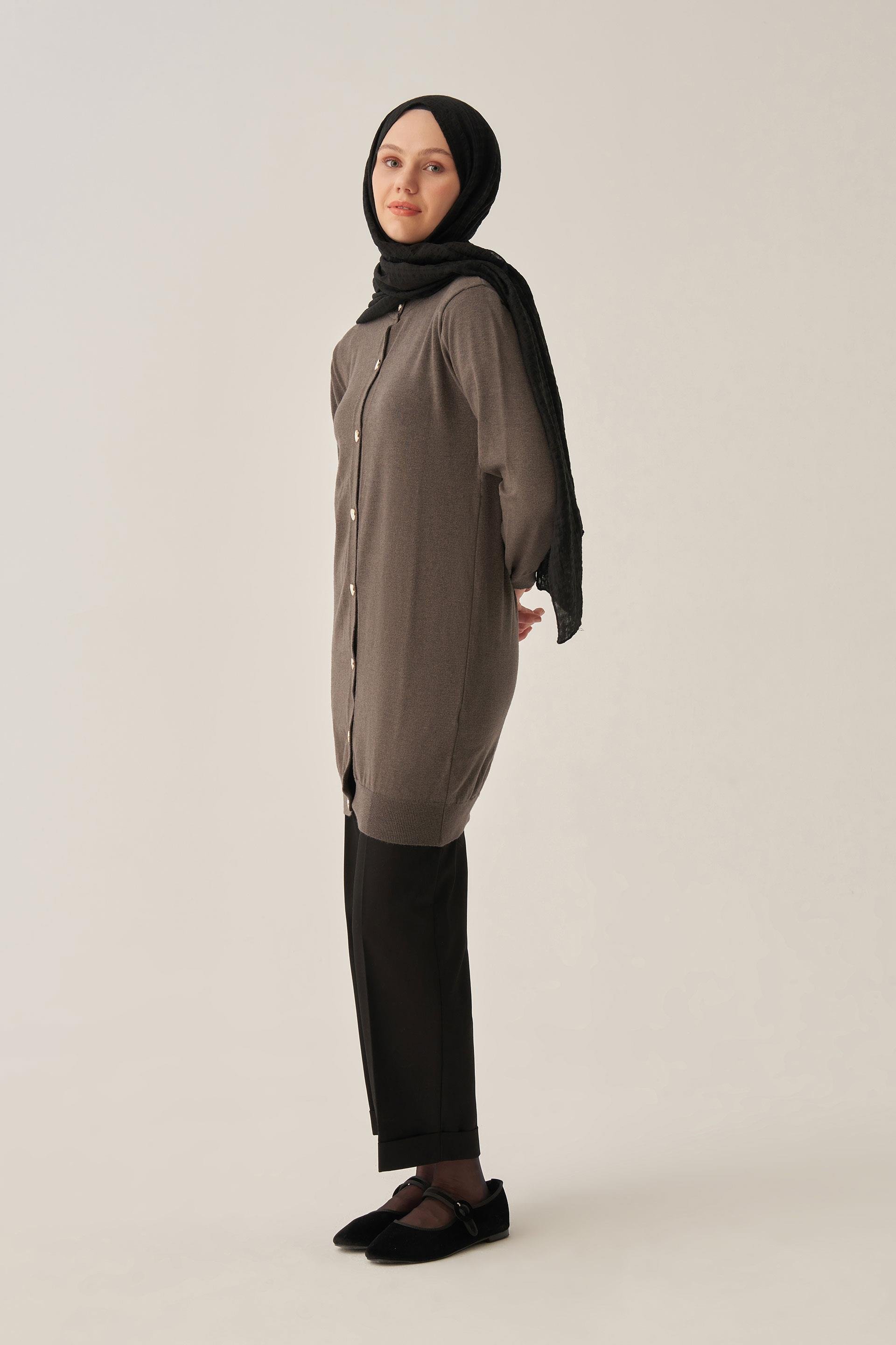 Antrasit-Gold Dügmeli Uzun Triko Hırka