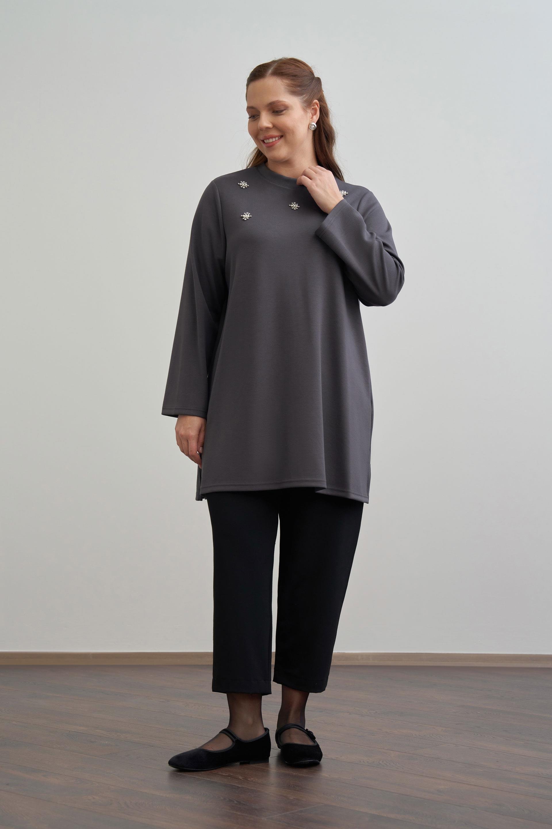 Antrasit-İnci İşlemeli Tunik (B50310A9)
