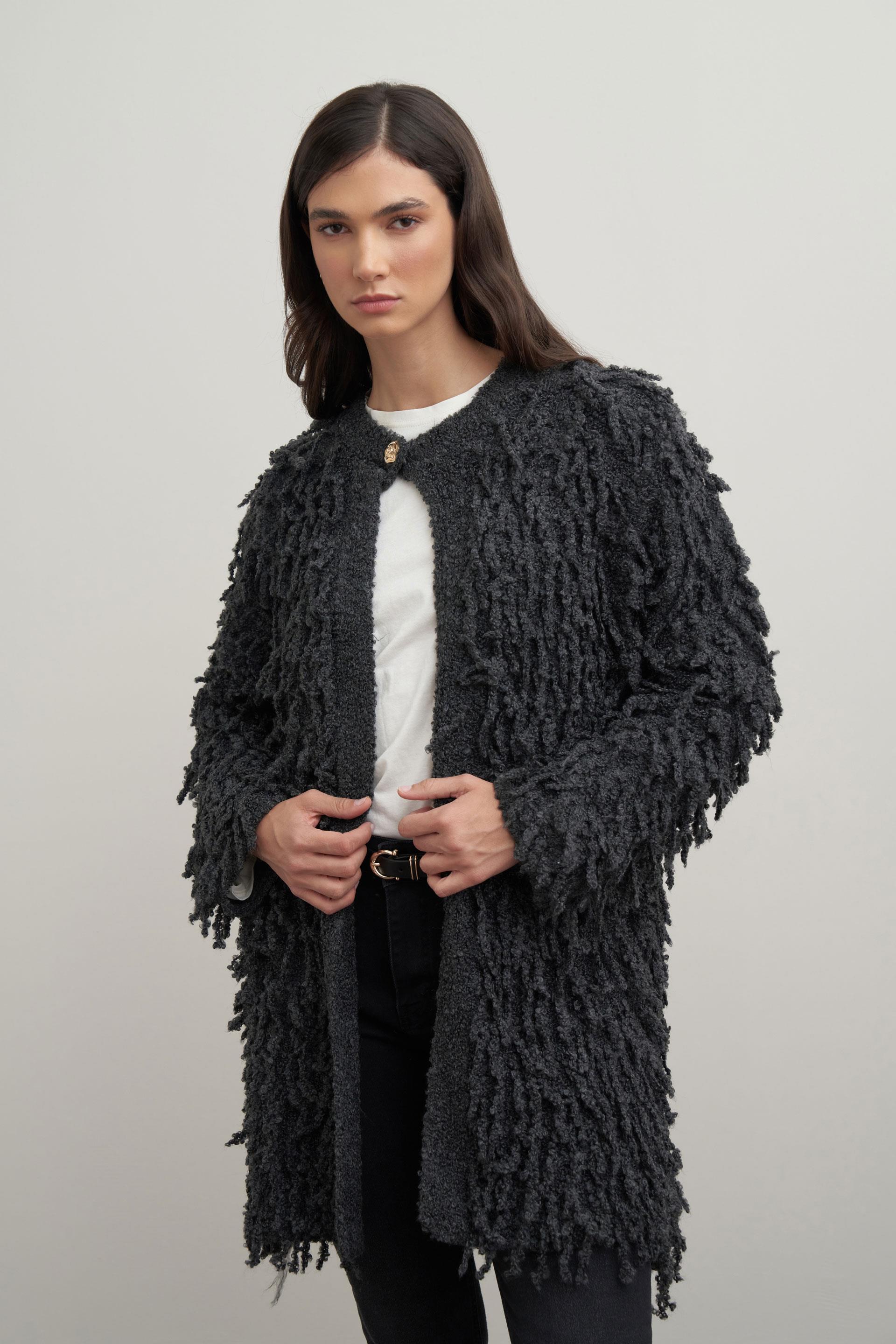 ANTRASİT-Kırpık Triko Hırka (W93102A0)