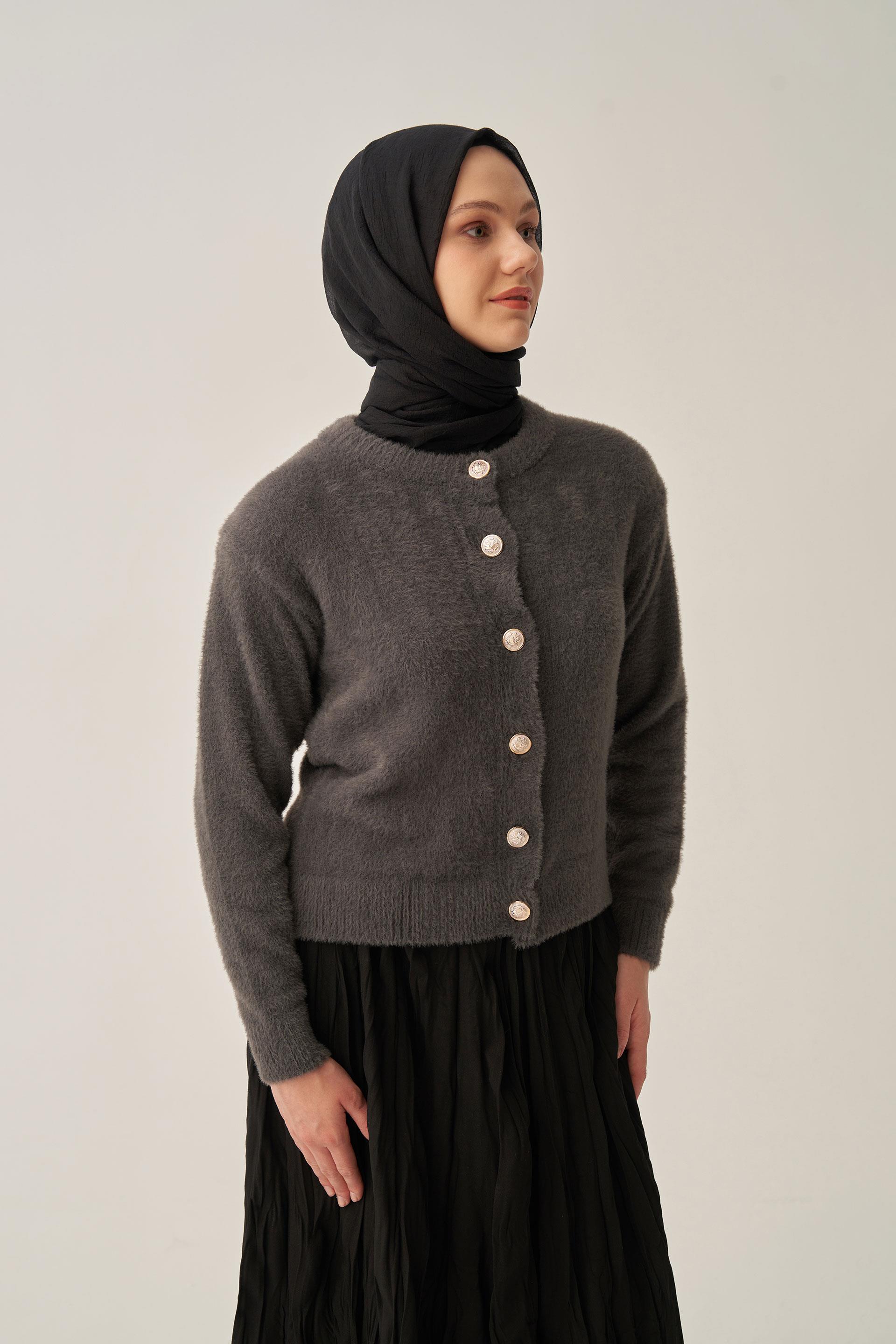 Antrasit-Yumuşak Dokulu Dügmeli Hırka