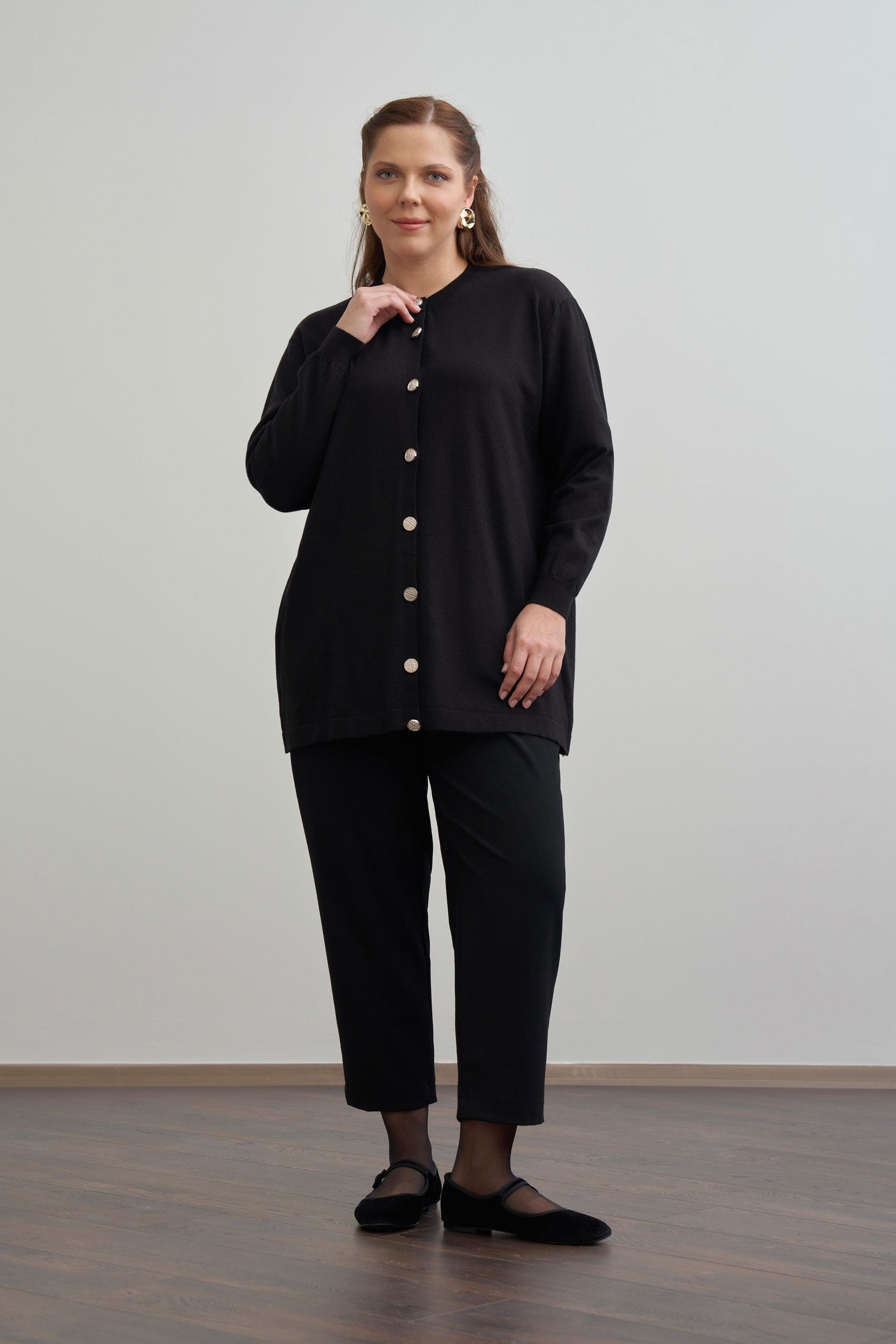 Siyah-Patı Dügmeli Triko Hırka (W93170A9)