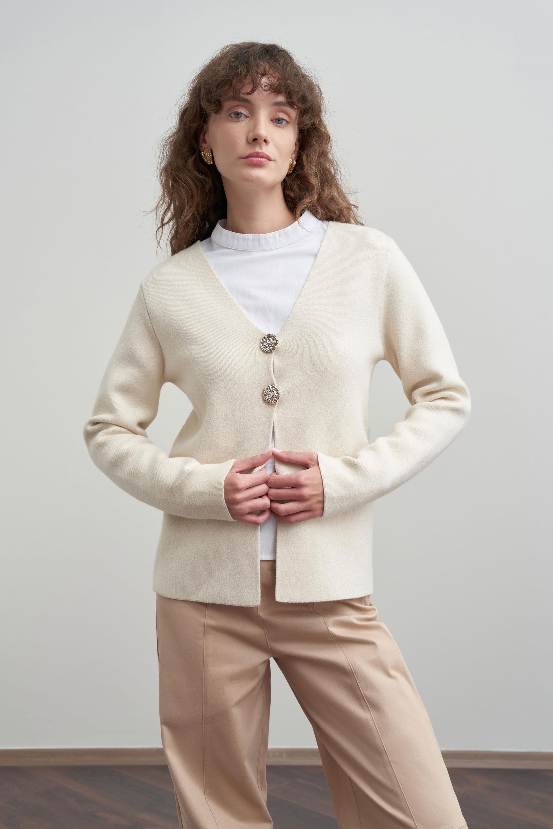 Bej-Şal Yaka Triko Hırka (W93172A0)