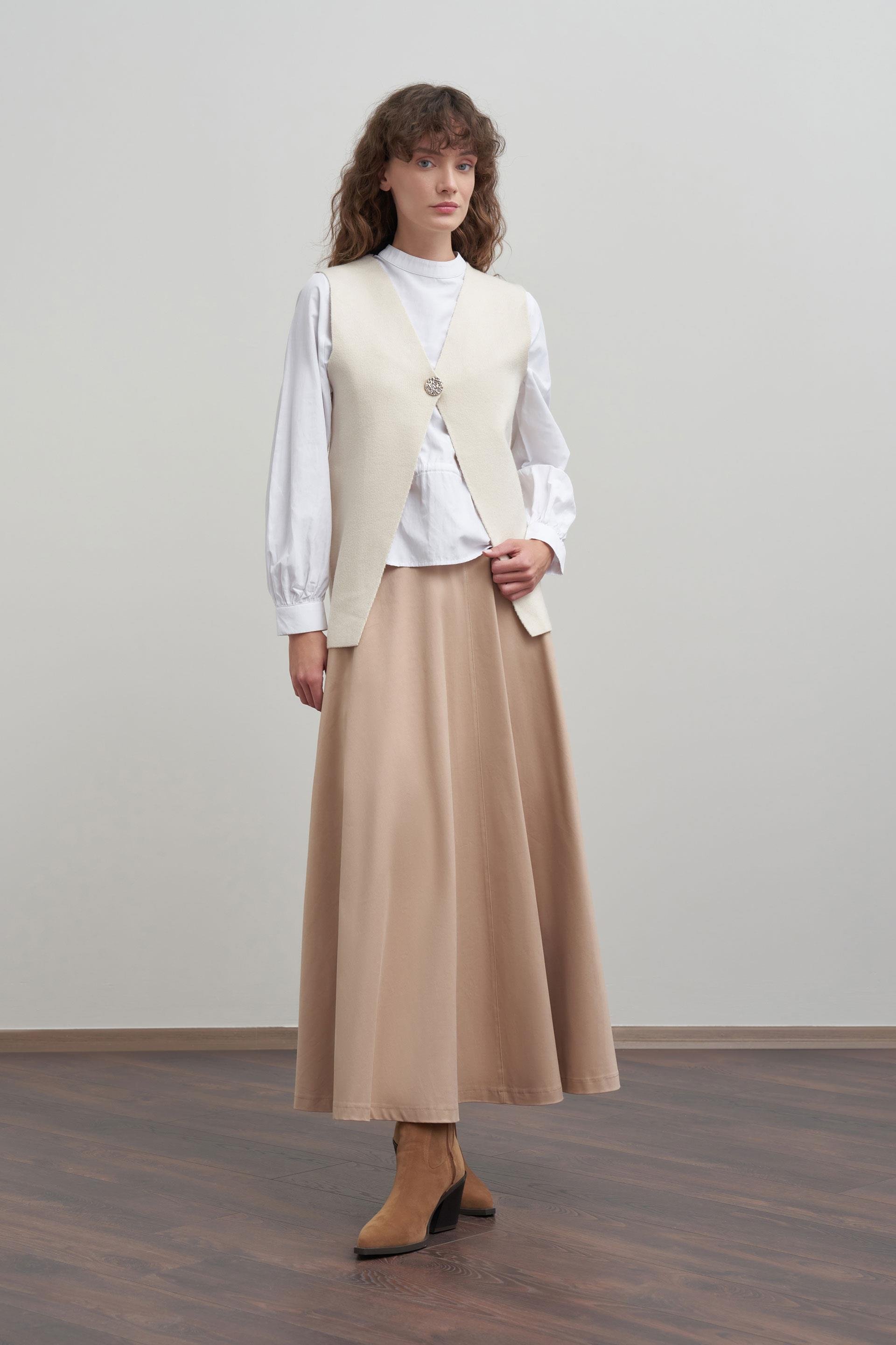 Bej-Tek Dügmeli Triko Hırka