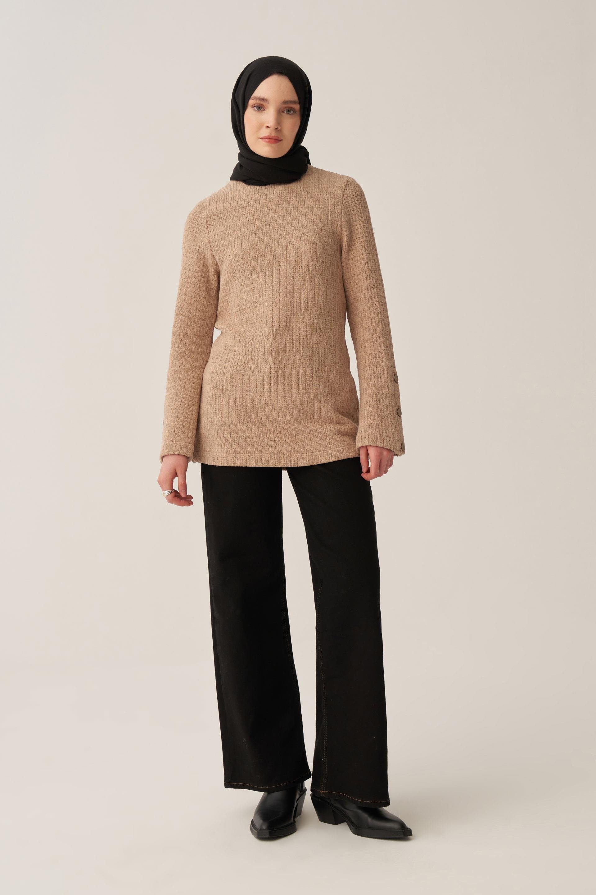 Şıklığı detaylarda arayanlara özel Bej-Triko Efektli Bluz ile zarif bir görünüm yakalayın. Günlük ve özel kombinler için ideal tasarım ALLDAY’de!