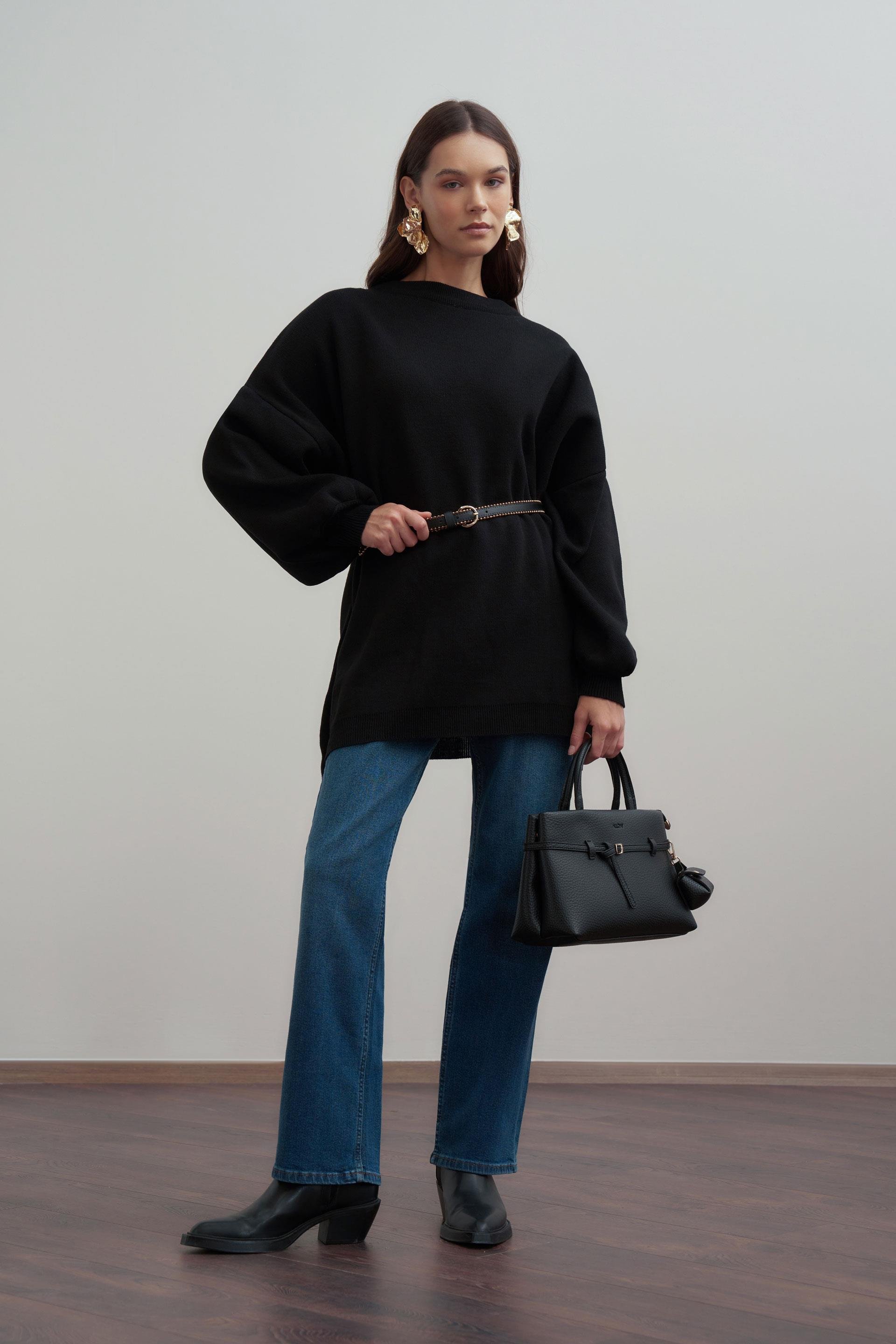 Siyah-Bol Kesim Triko Kazak (W55049A0)