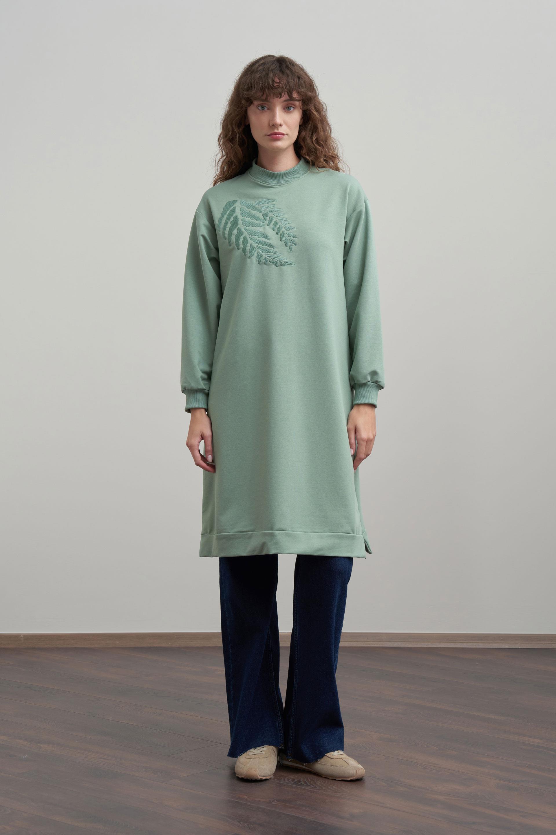 Defne-Pamuklu Nakışlı Uzun Tunik