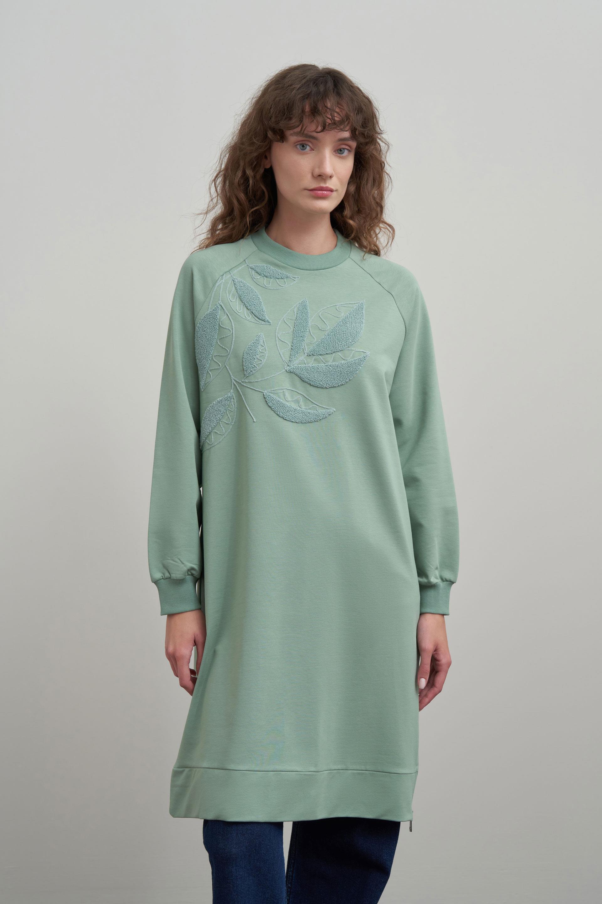 Defne-Pamuklu Yaprak Desenli Tunik