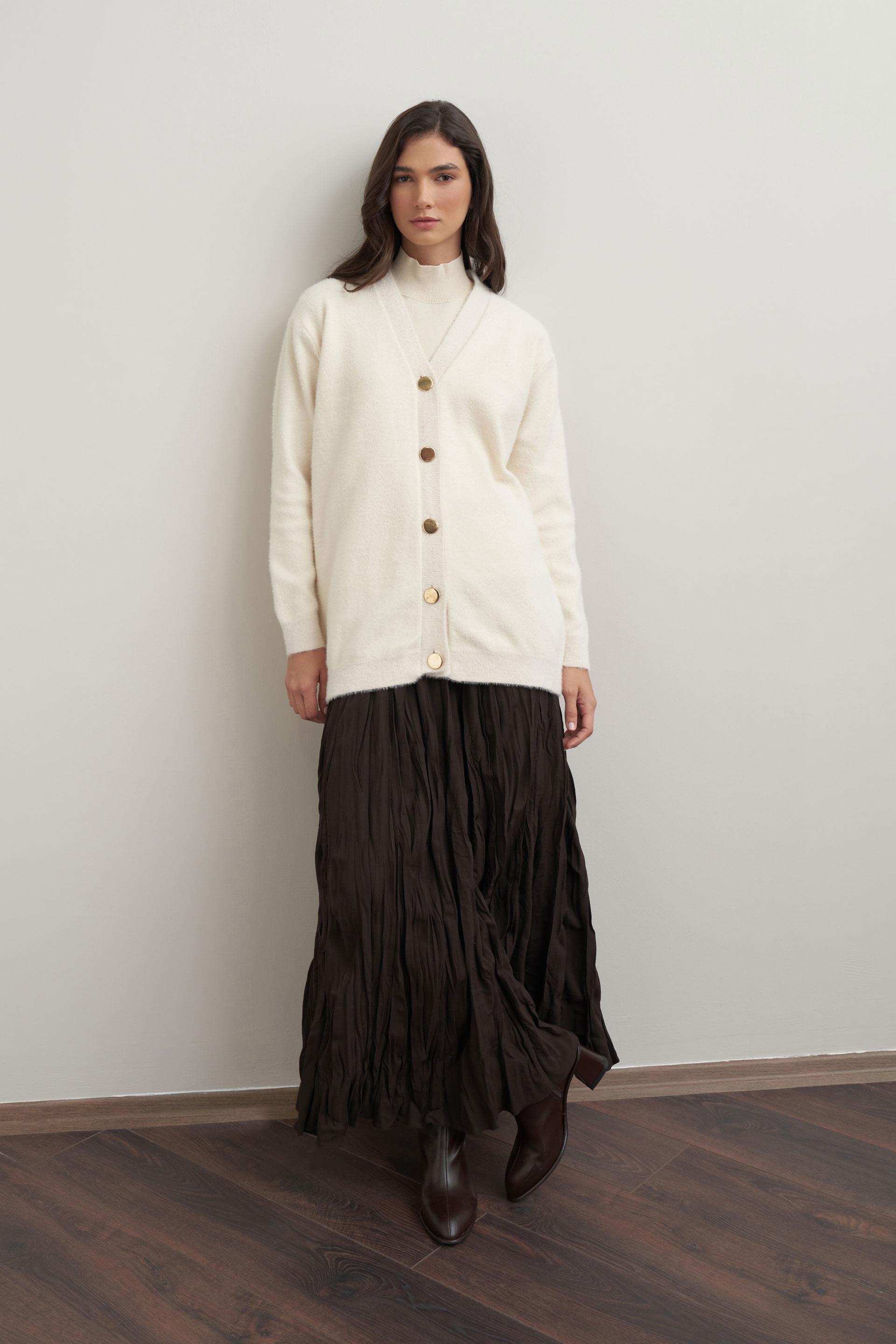Ekru-Dügmeli Yumuşak Triko Hırka (W93101A0)