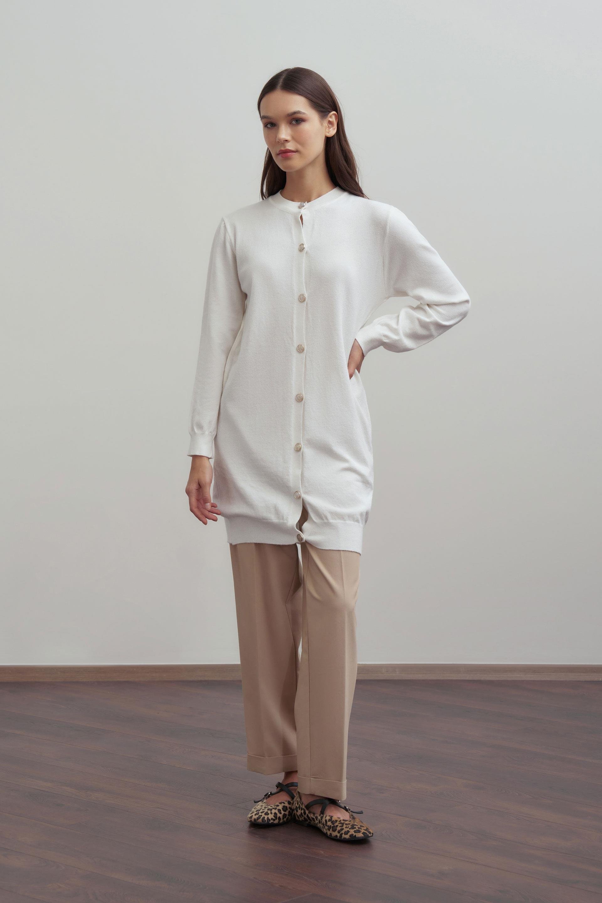 Ekru-Gold Dügmeli Uzun Triko Hırka (BTW93167AL0)
