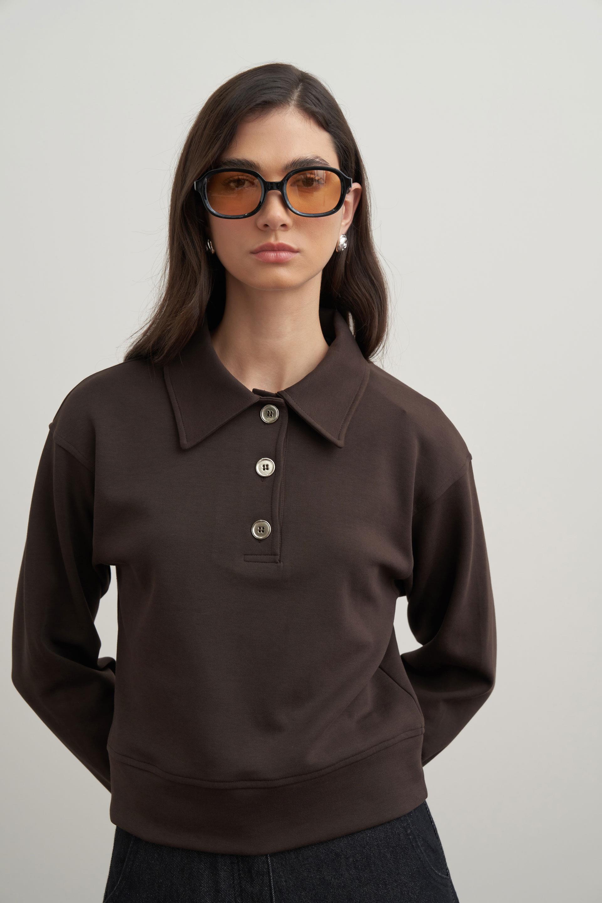Acı Kahve-Gömlek Yakalı İnterlok Sweatshırt (W52320A0)