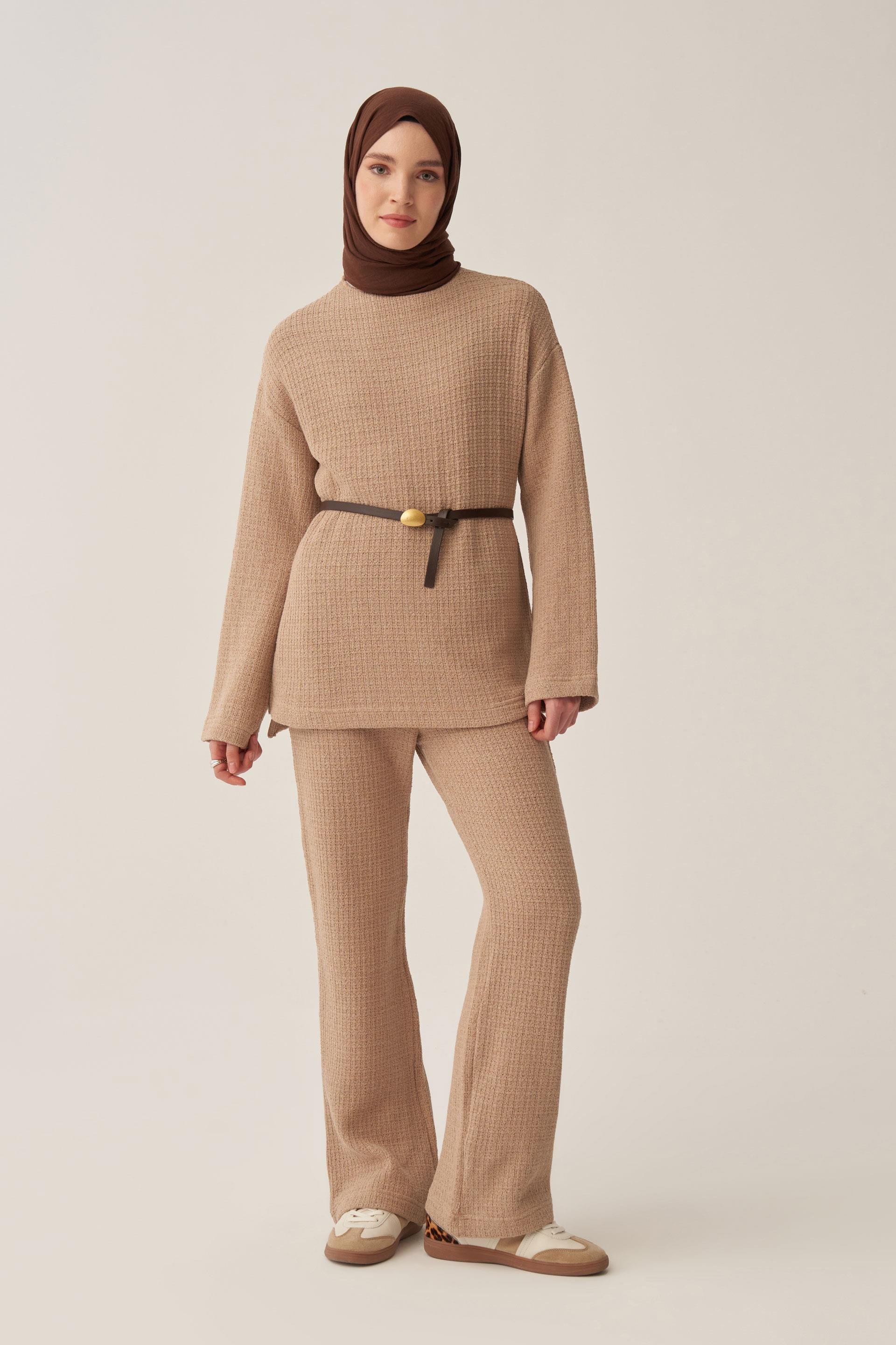 Bej-Triko Efektli Pantolonlu Takım (W30109A0)