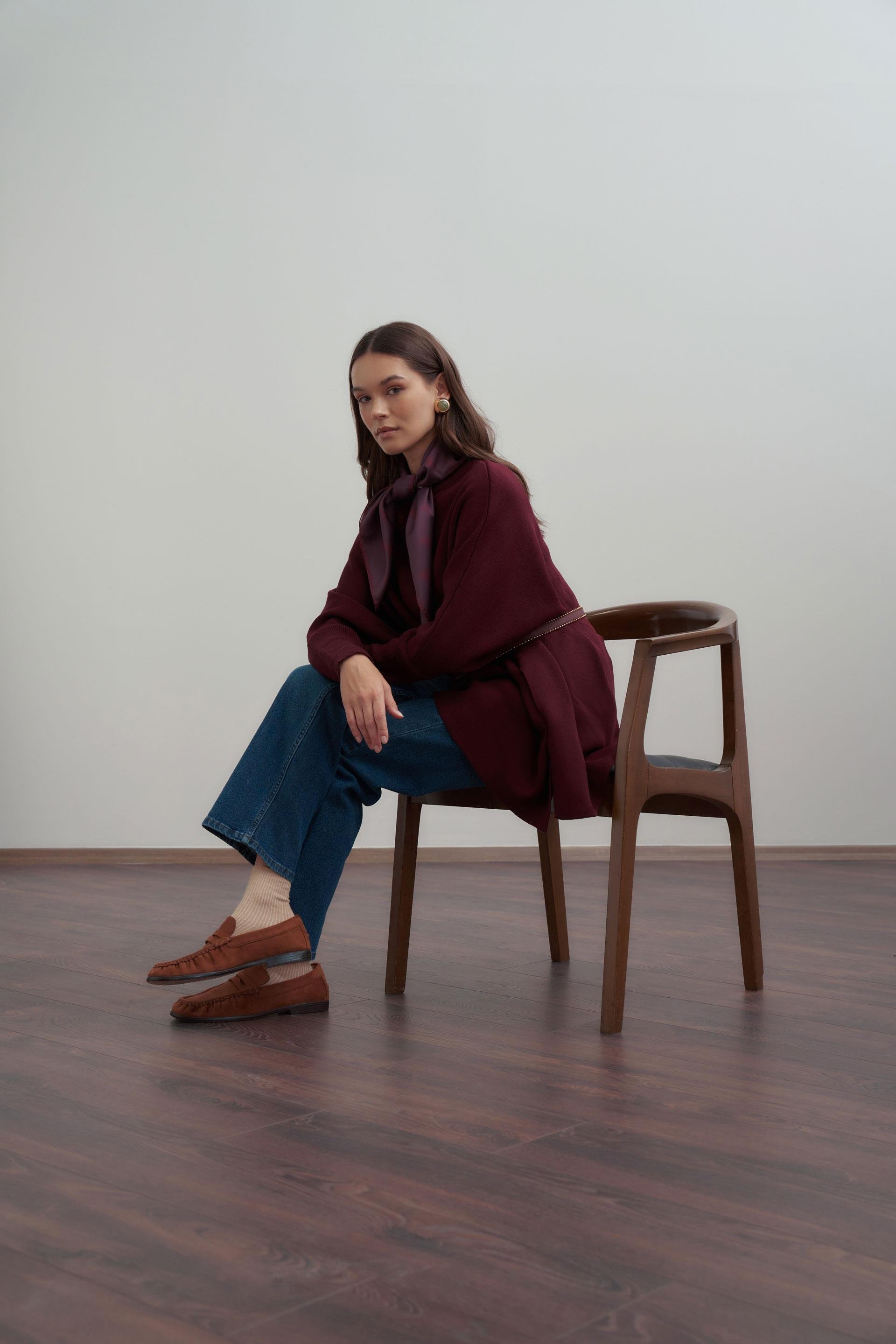 Bordo-Asimetrik Kesim Triko Kazak (W55048A0)