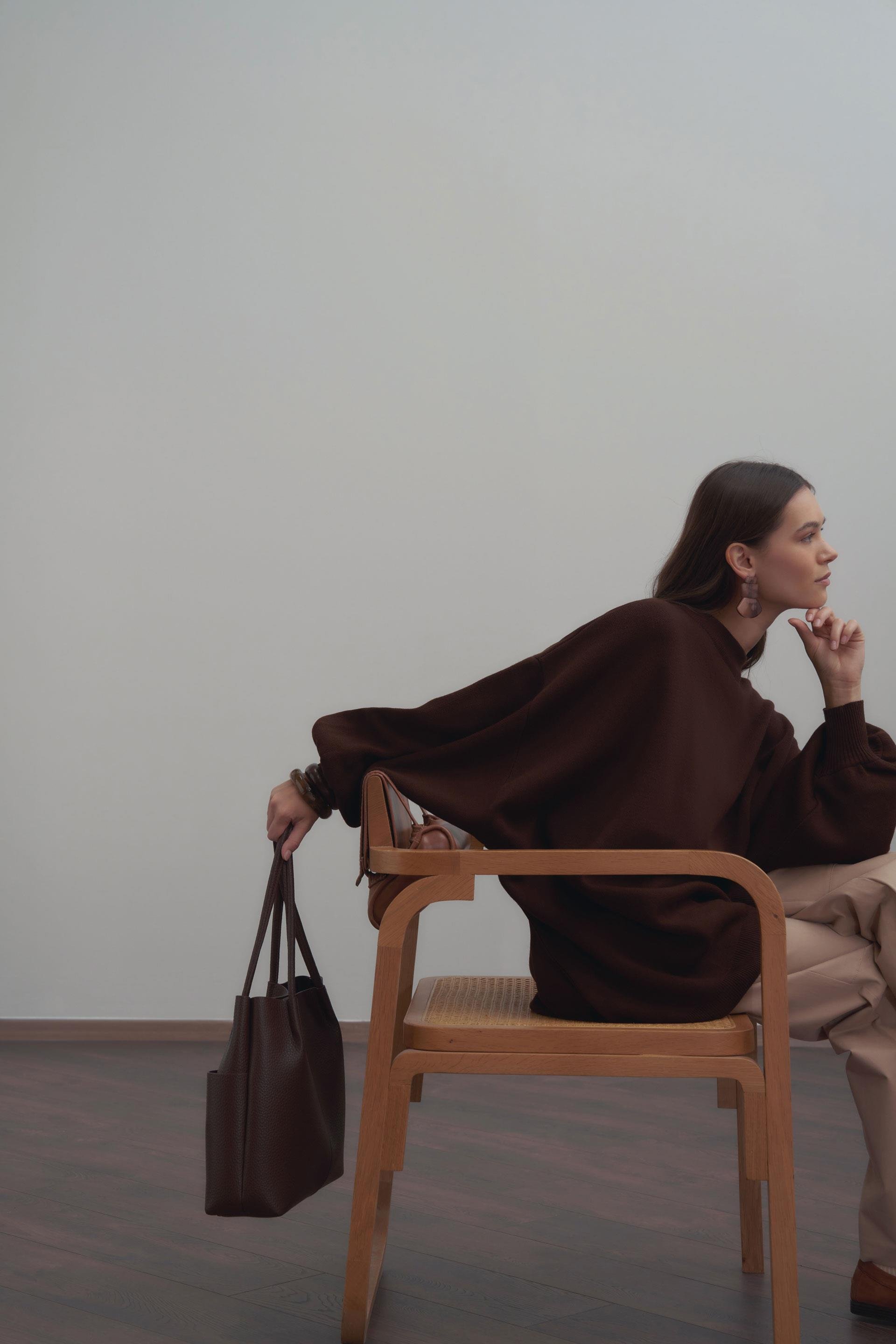 Kahve-Bol Kesim Triko Kazak (W55049A0)