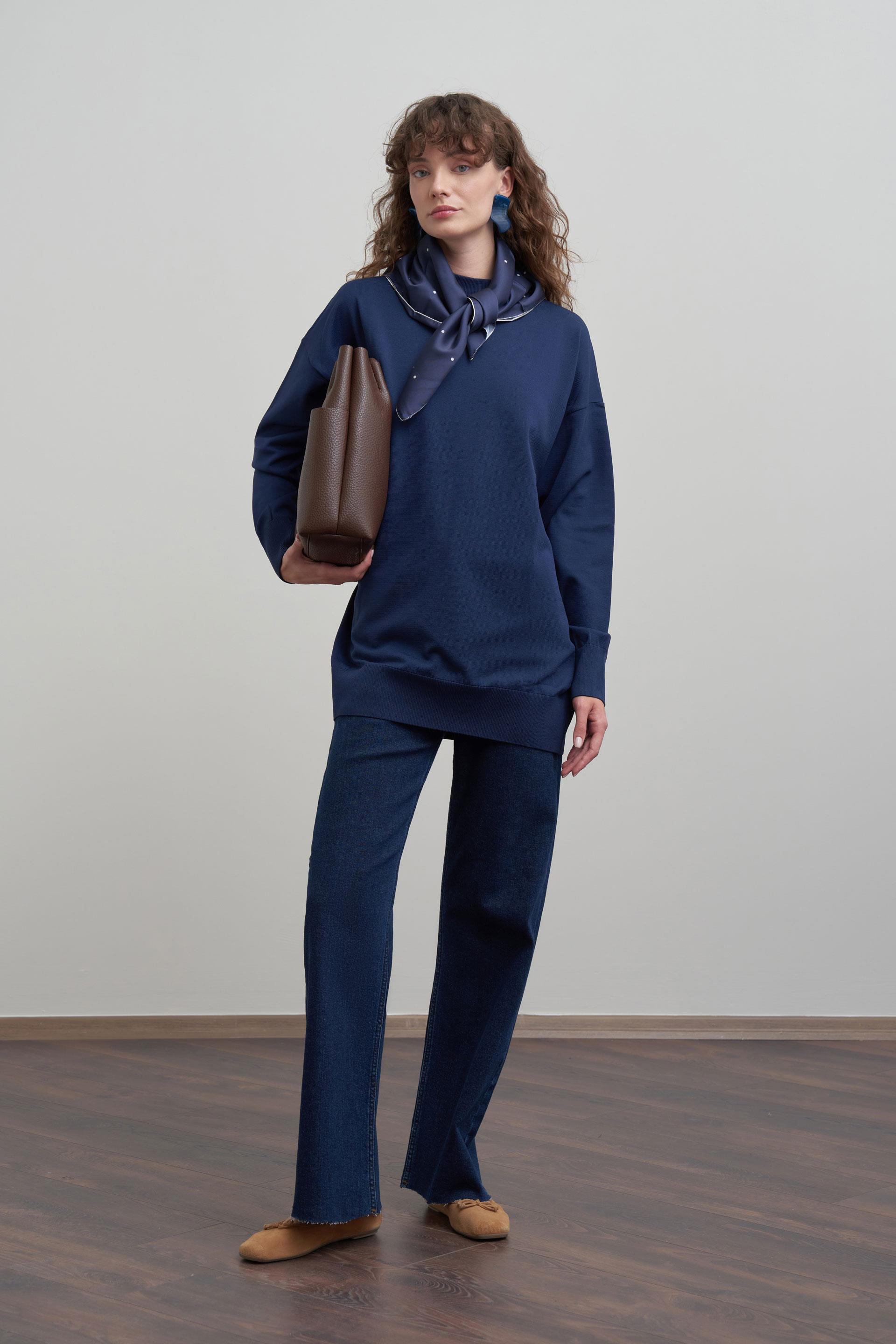 Lacivert-Bsiklet Yaka Kazak (W55022A0)