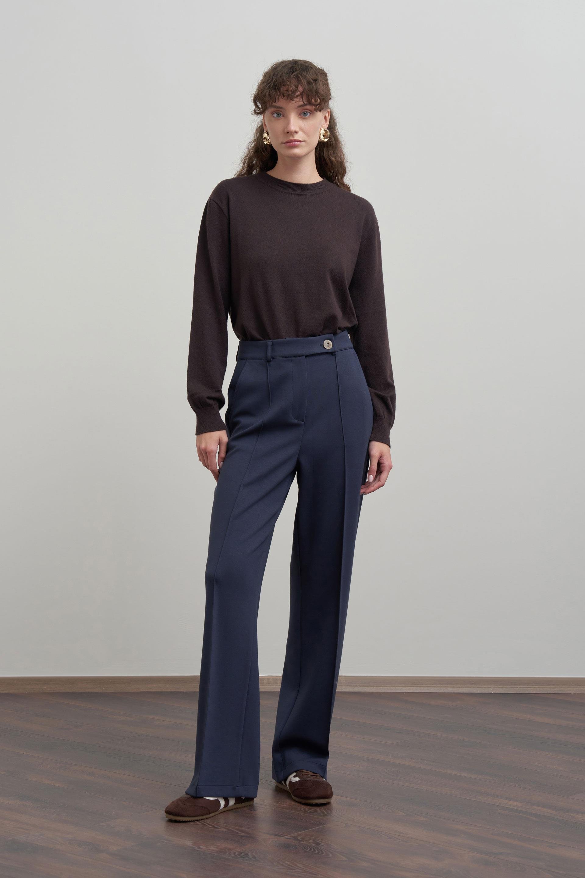 Lacivert-Yumuşak Dokulu Palazzo Pantolon