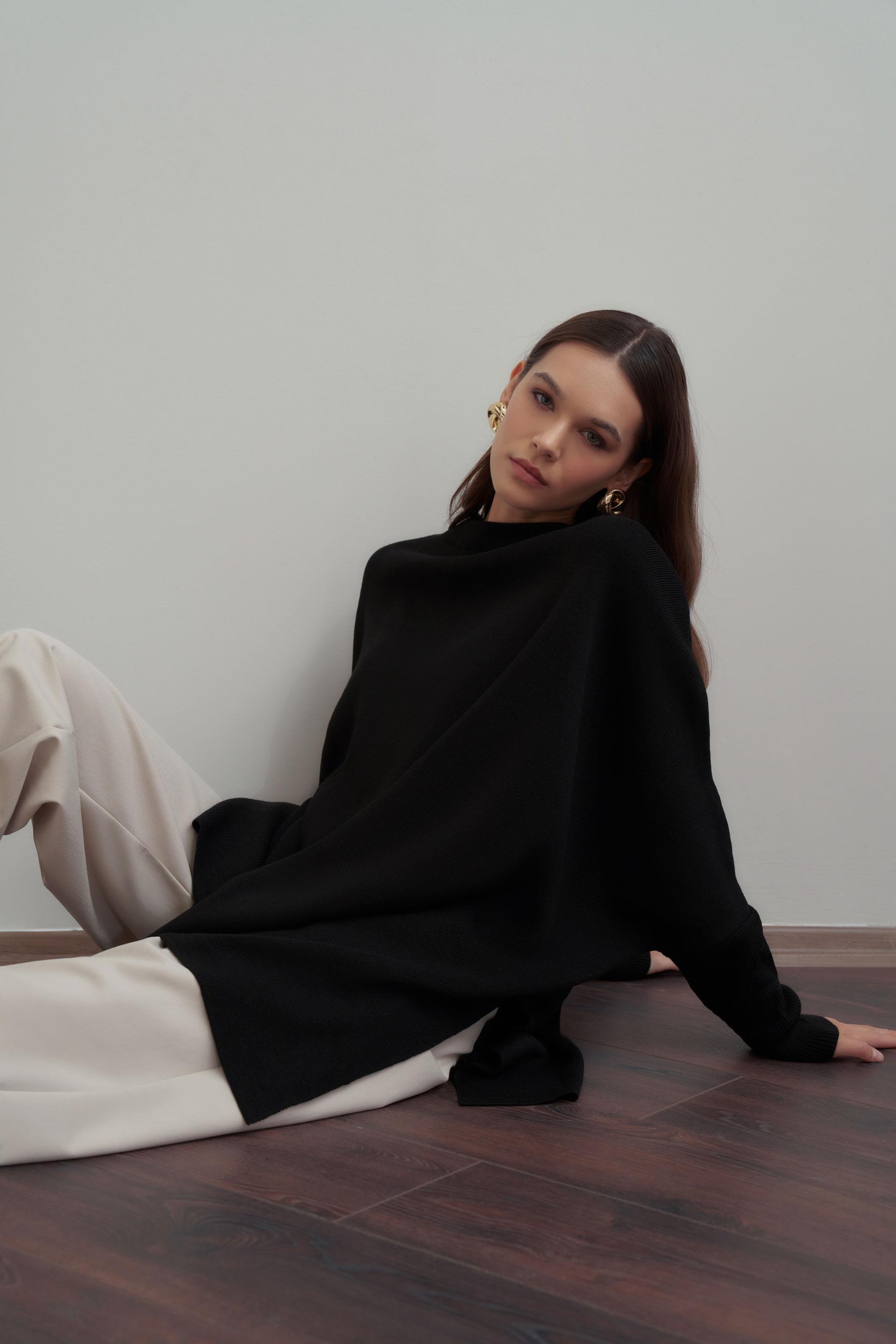 Siyah-Asimetrik Kesim Triko Kazak (W55048A0)