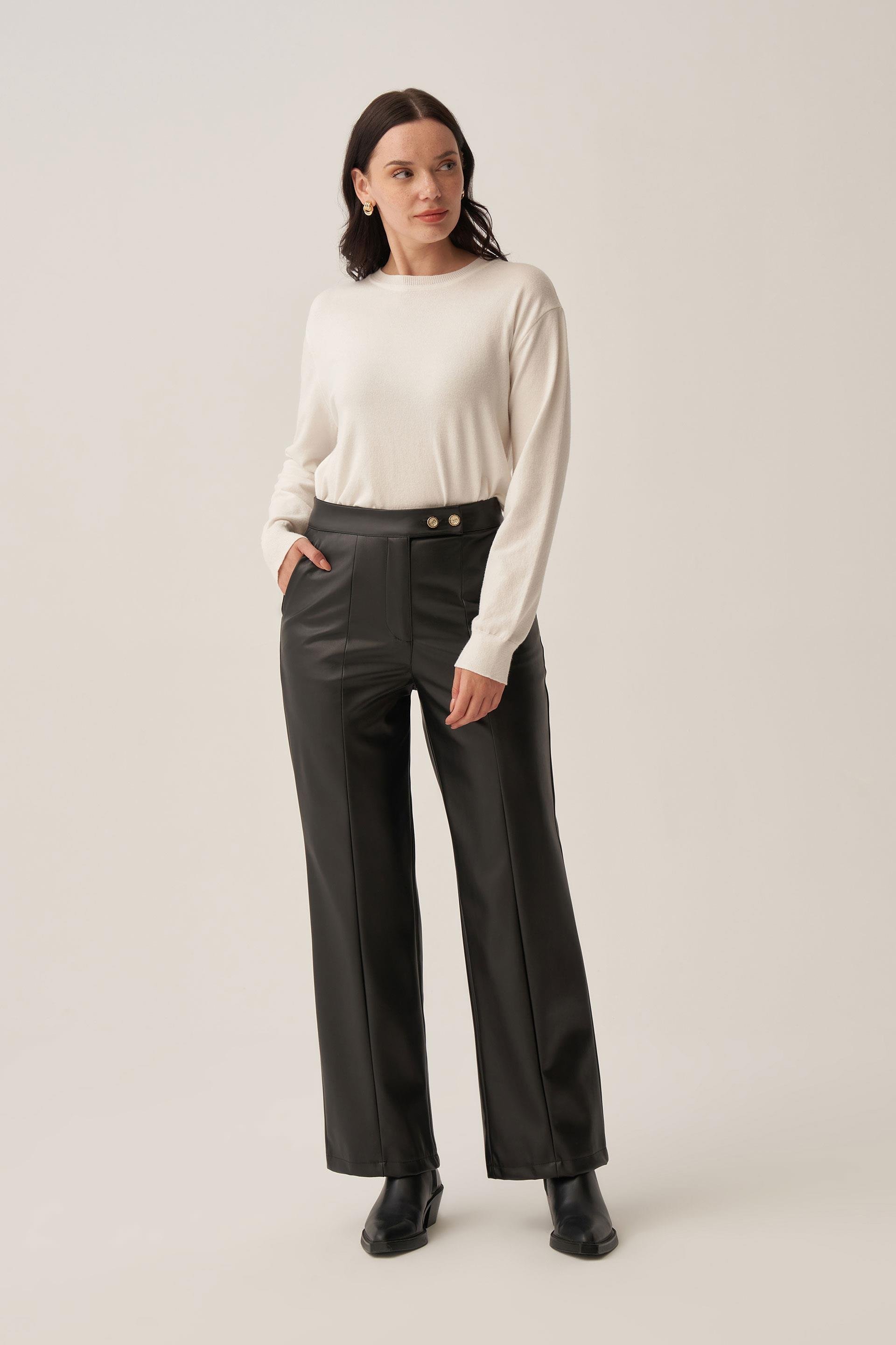 Siyah-Gold Düğmeli Süet Deri Pantolon