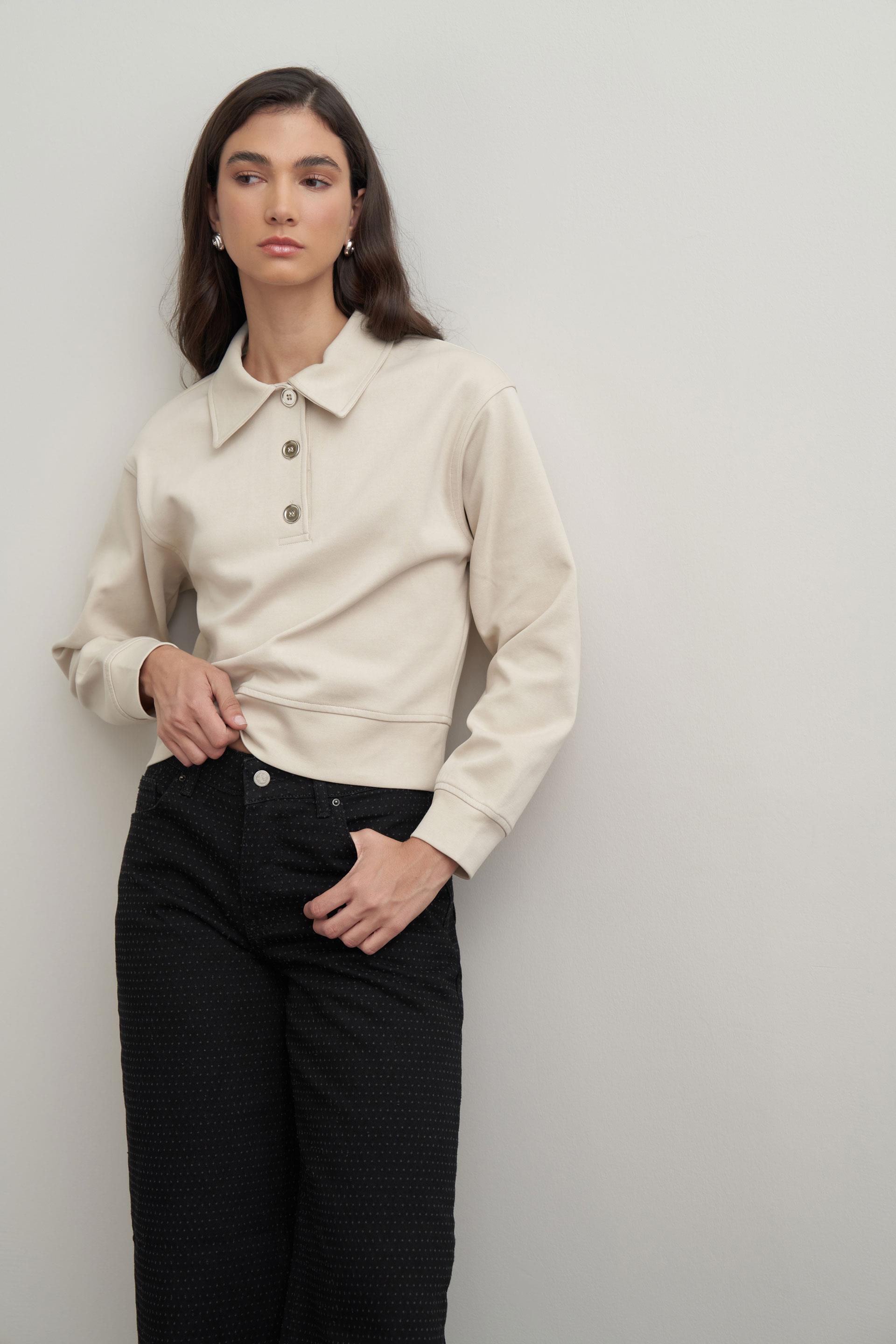 Taş-Gömlek Yakalı İnterlok Sweatshırt (W52320A0)