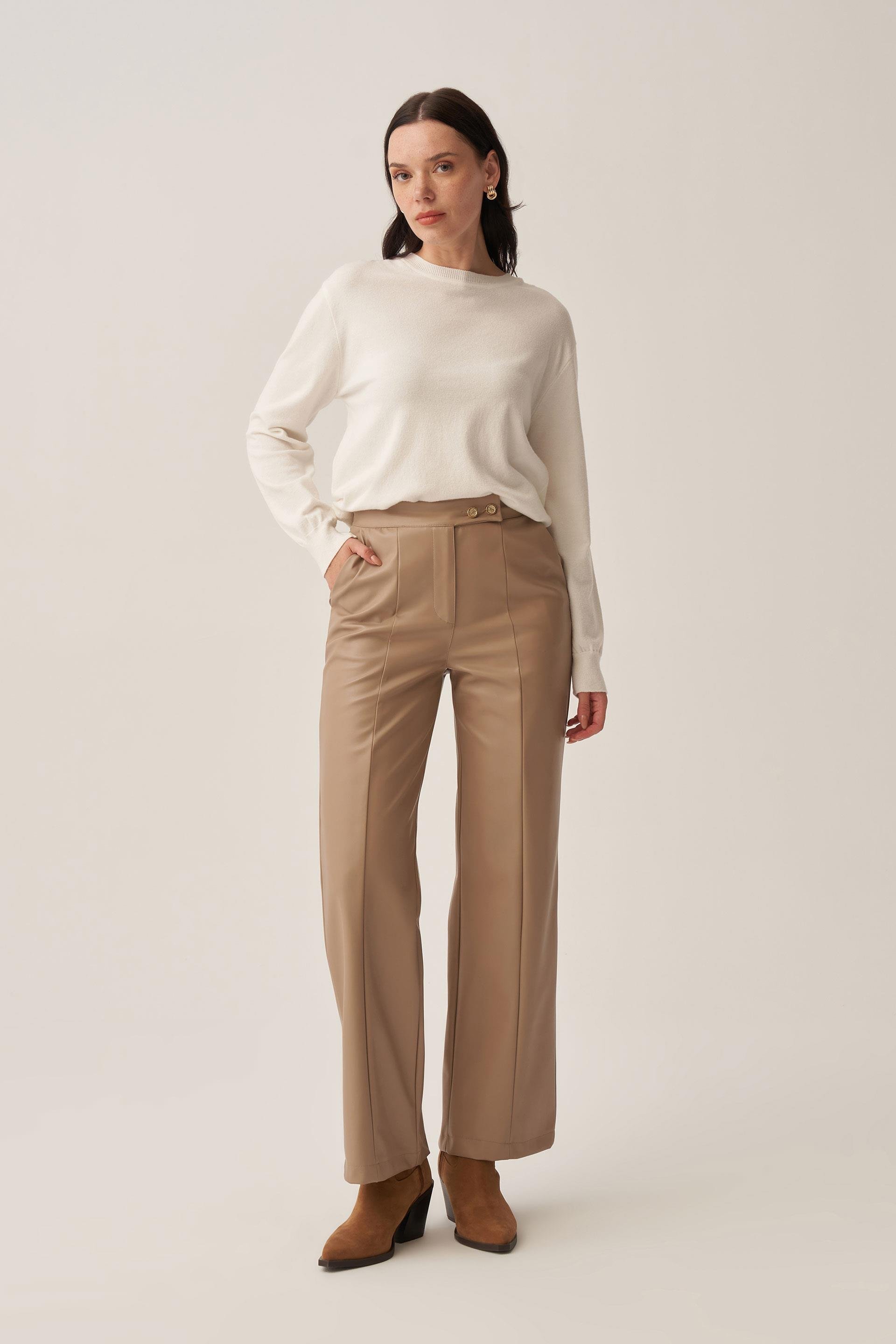 Vizon-Gold Düğmeli Süet Deri Pantolon
