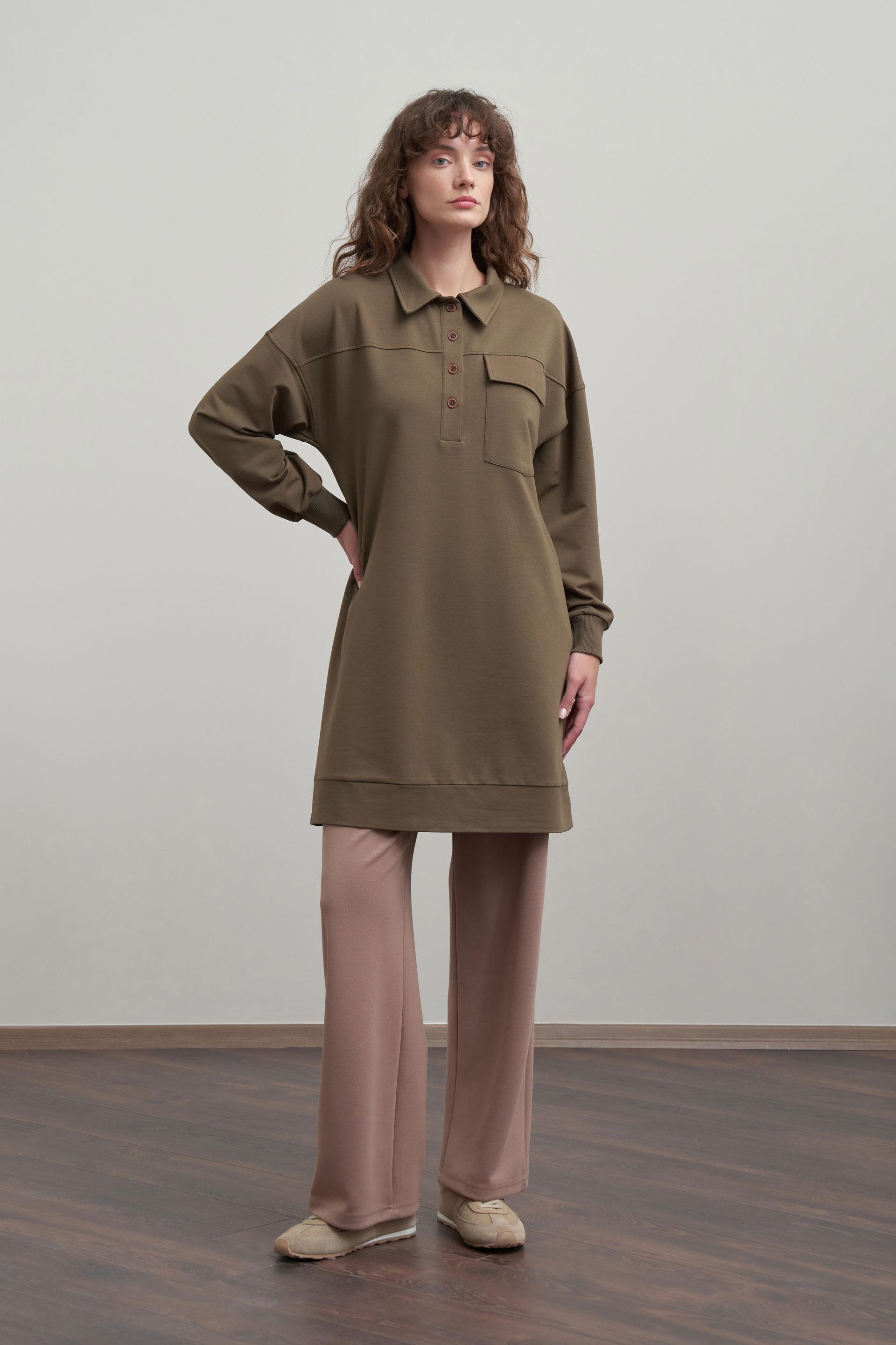 Haki-Pamuklu Cep Detaylı Tunik (B52352A0)
