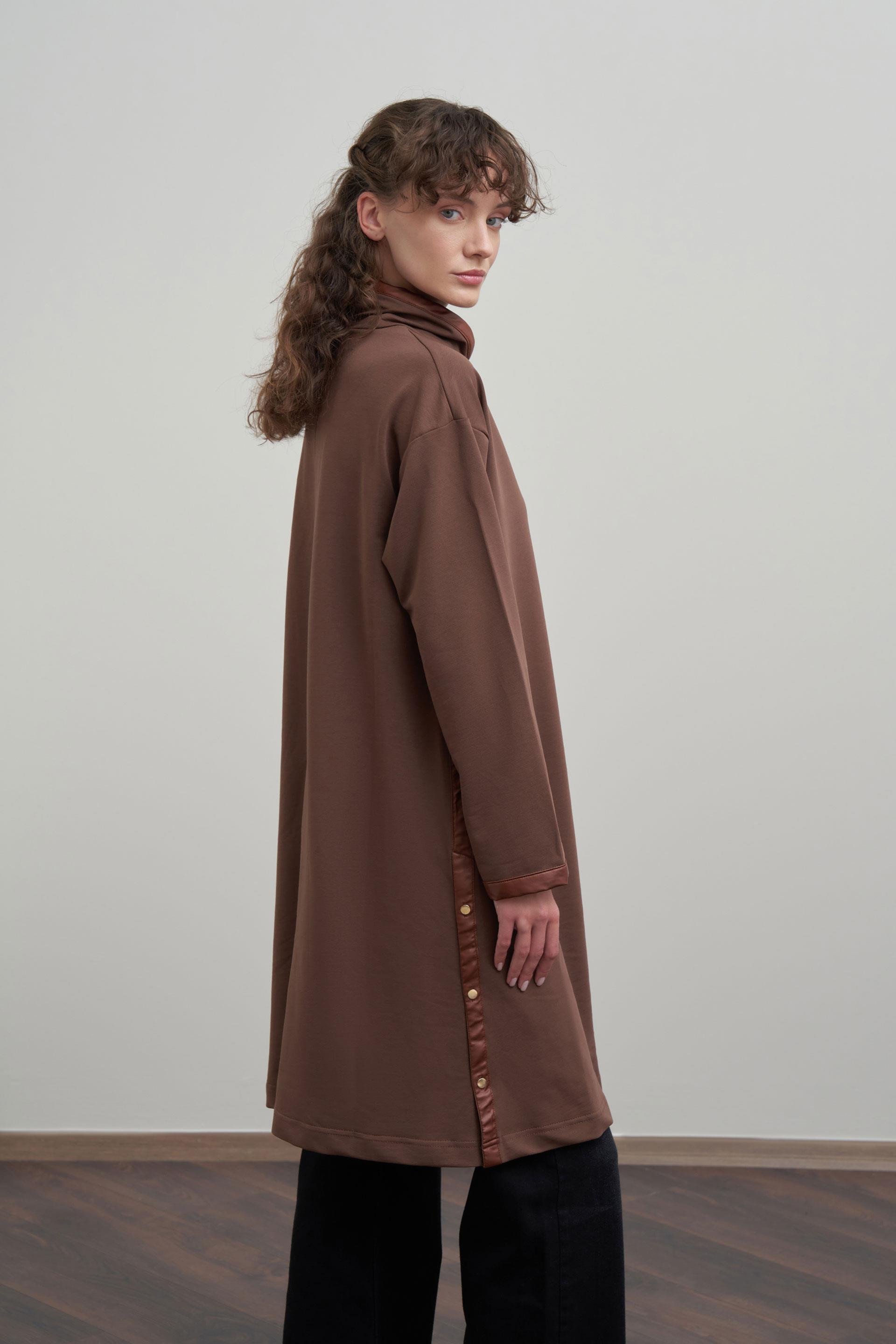 Kahve-Deri Biyeli Pamuklu Uzun Tunik