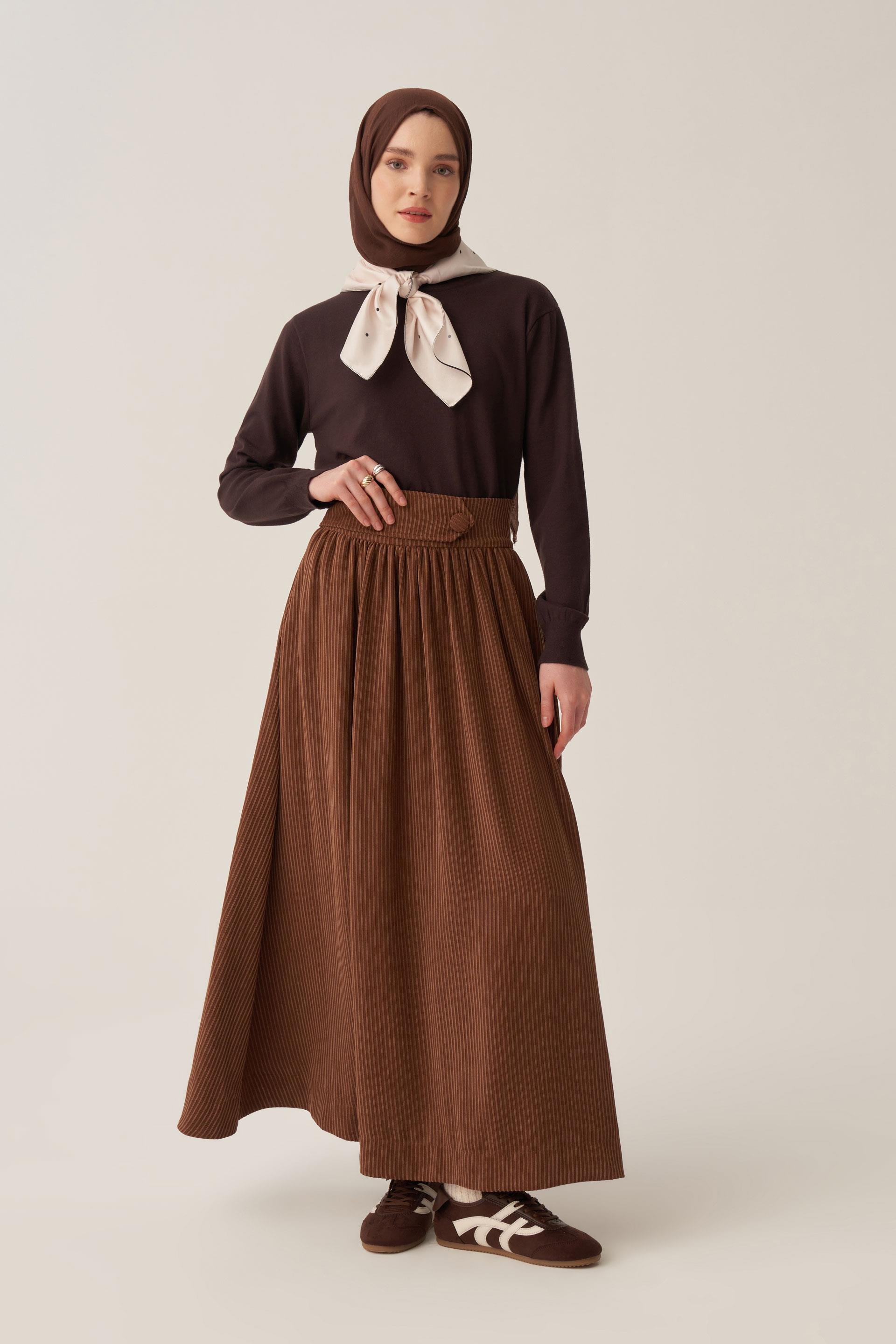 Kahve-Fitilli Kadife Kloş Etek (W61011A0)