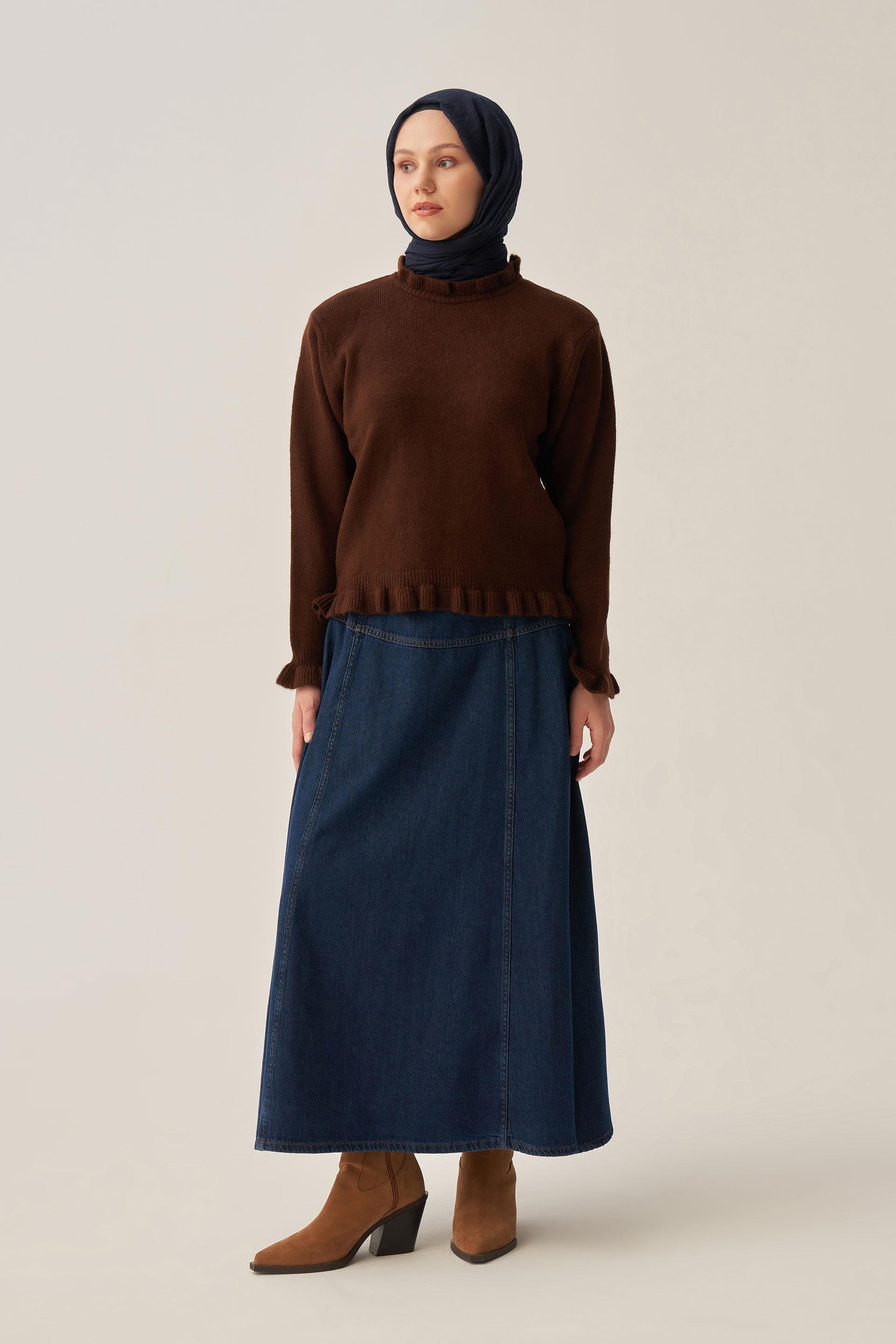Kahve-Yakası Fırfırlı  Kısa Kazak