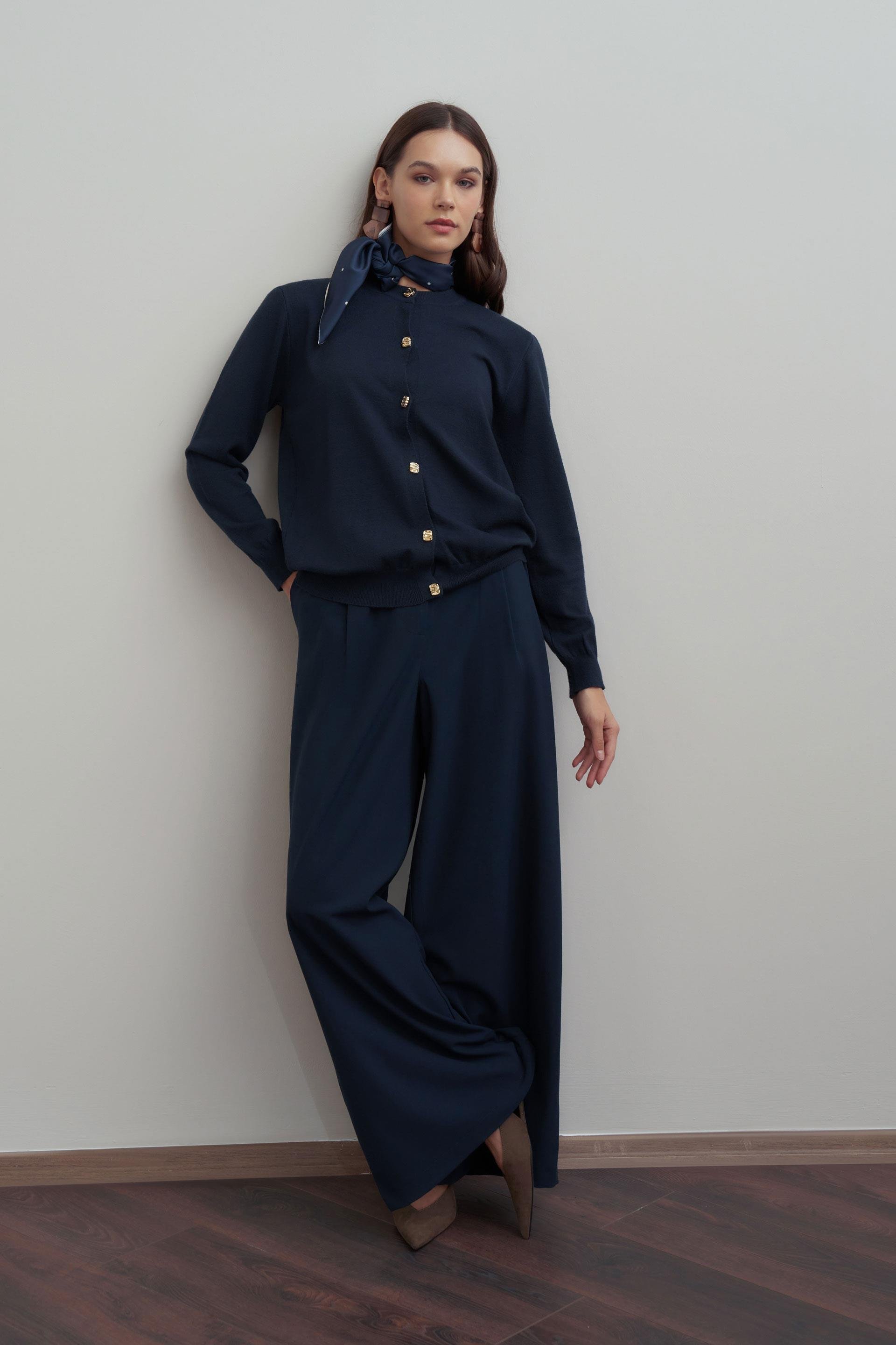 Lacivert-Gold Dügmeli Hırka