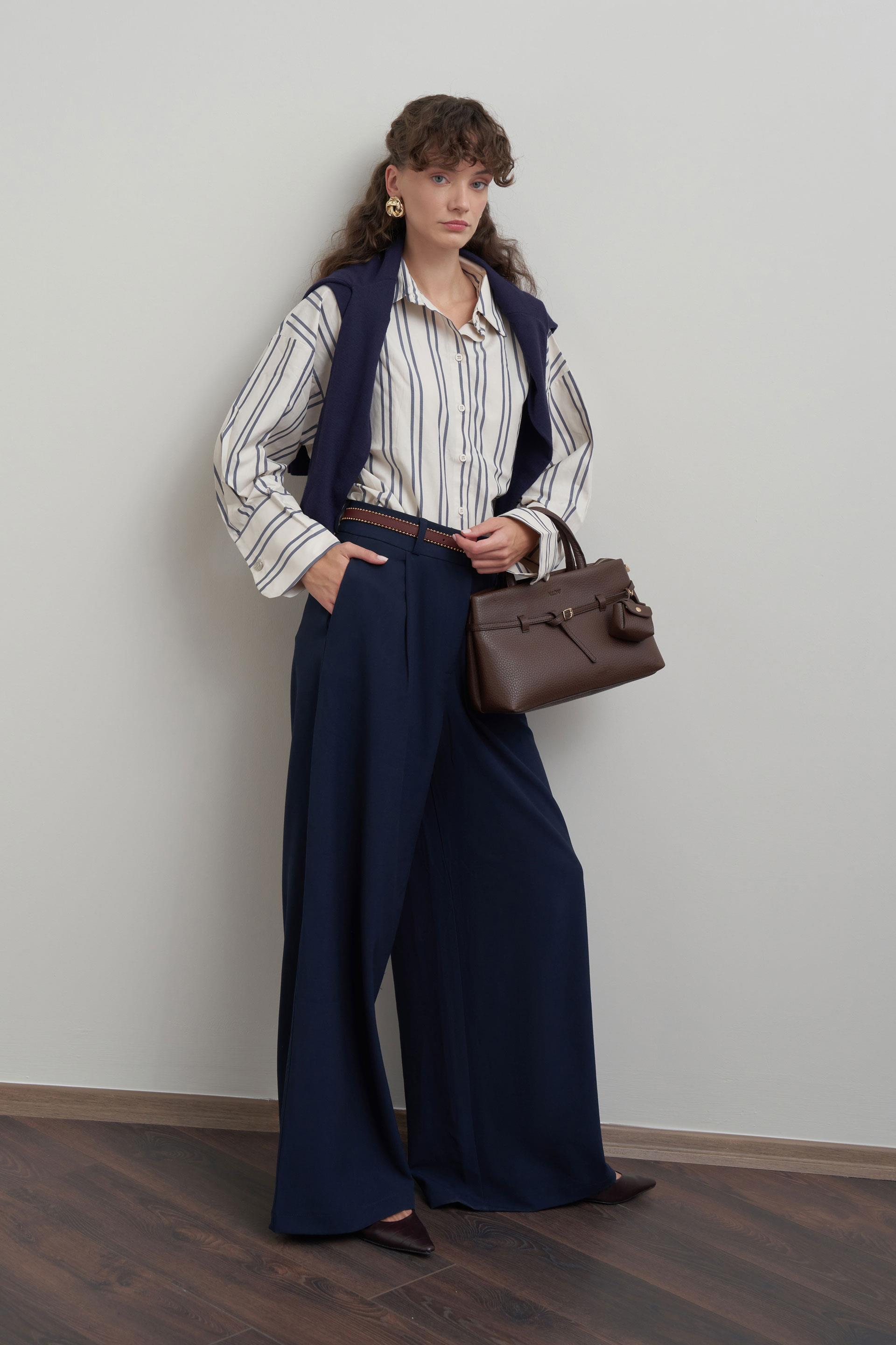 Lacivert-Pileli Polyviscon Pantolon (B77142A0)