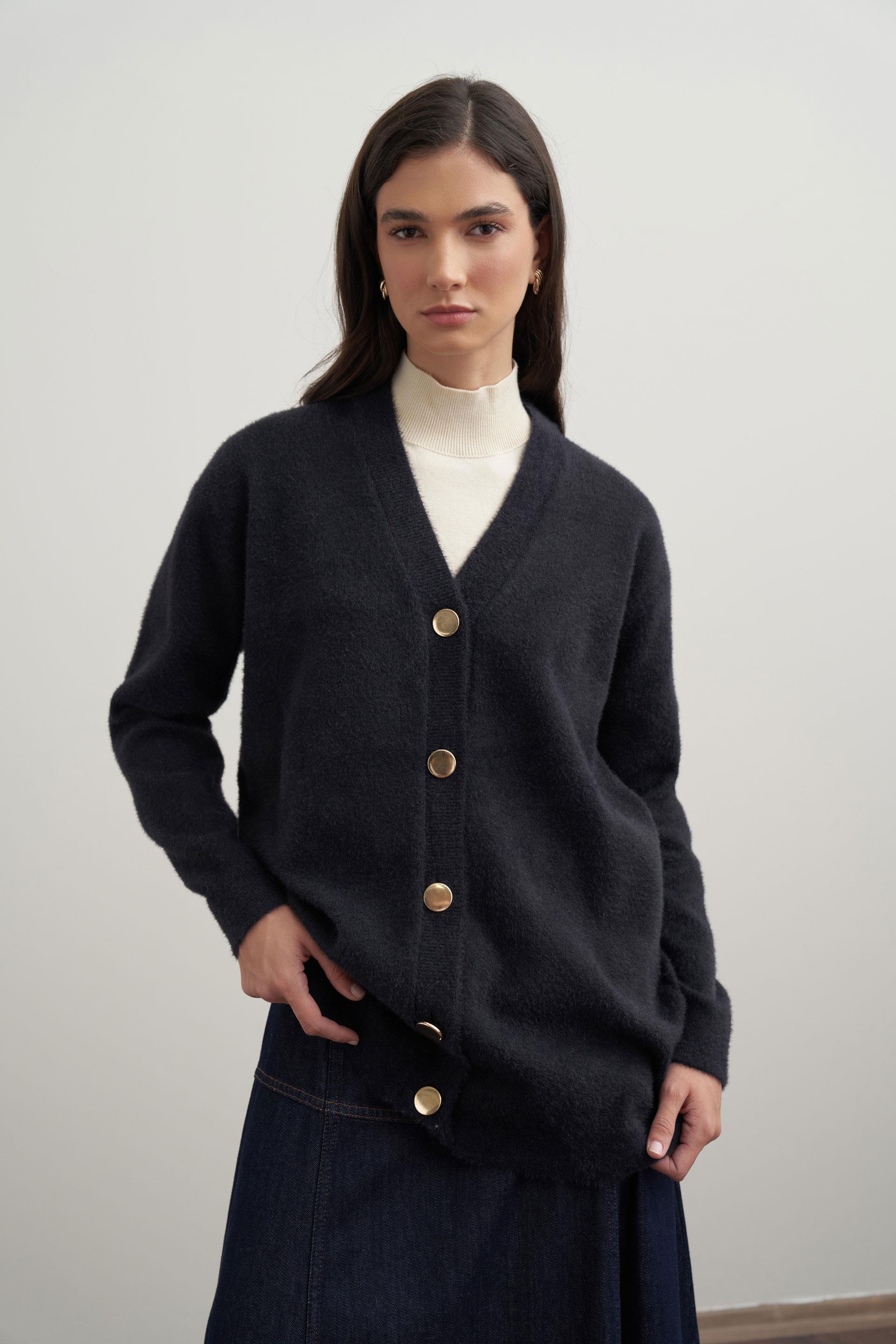 Siyah-Dügmeli  Yumuşak Triko Hırka