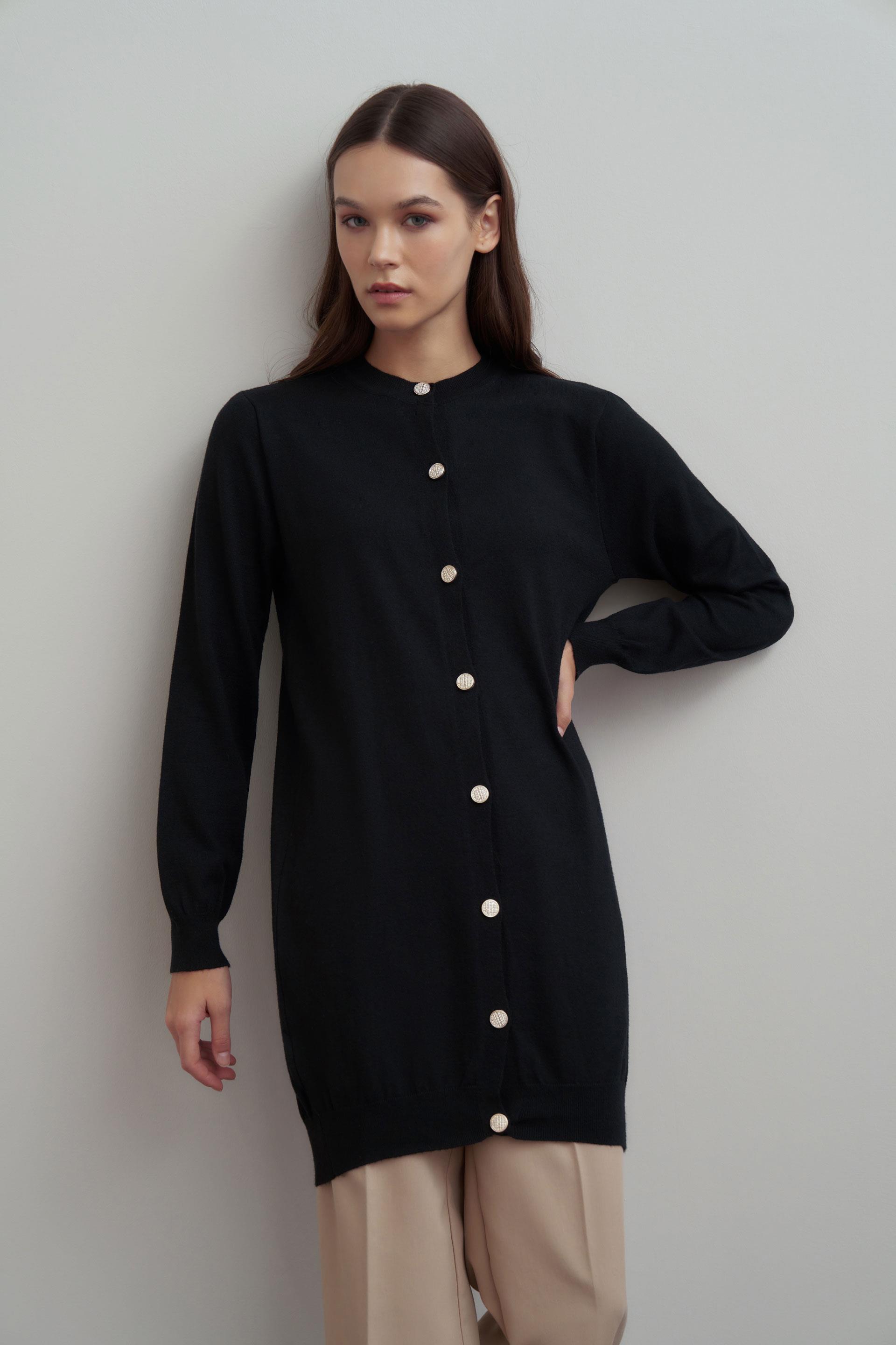 Siyah-Gold Dügmeli Uzun Triko Hırka