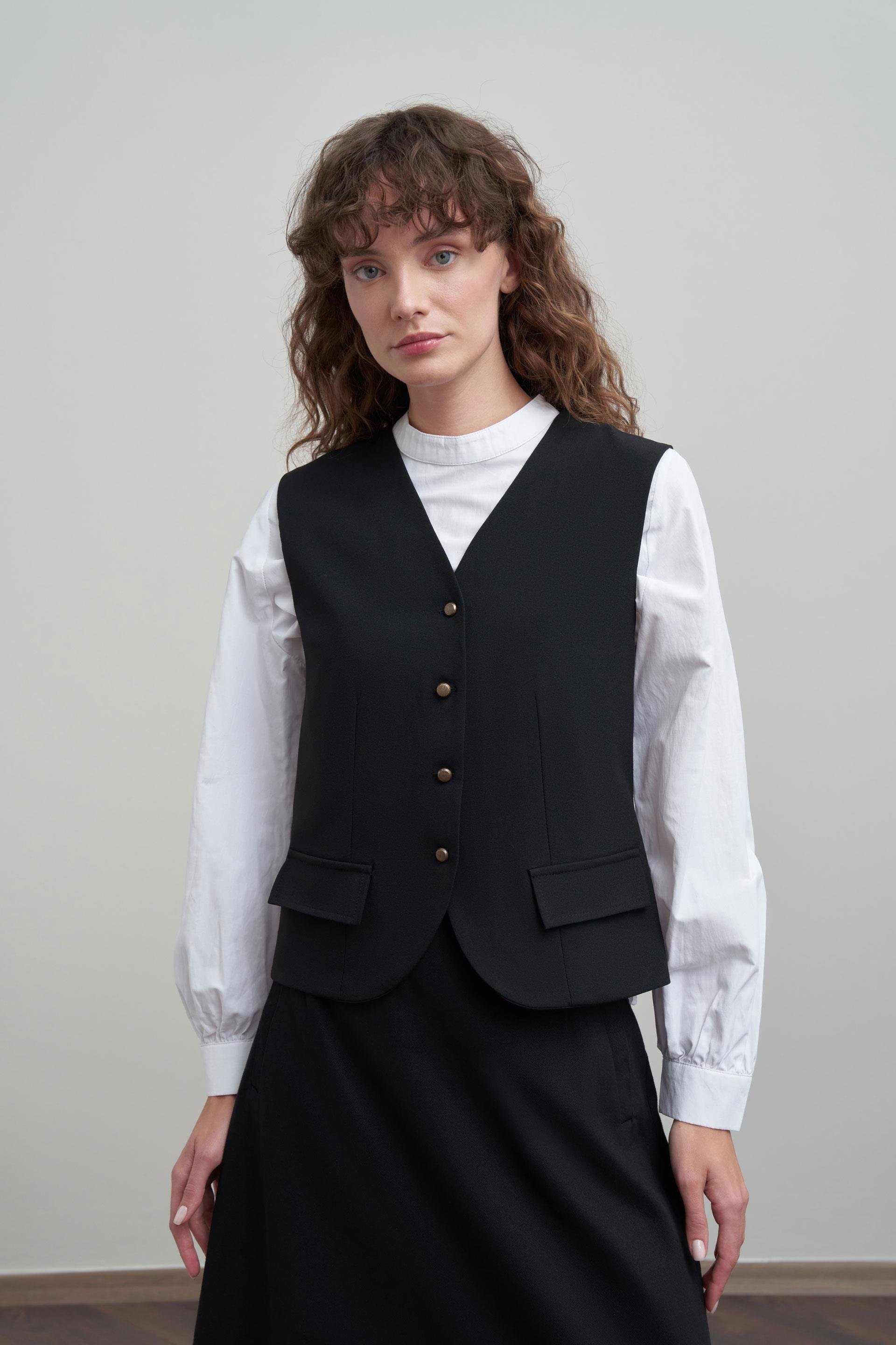 Siyah-V Yaka Polyviscon Yelek (B90047A0)