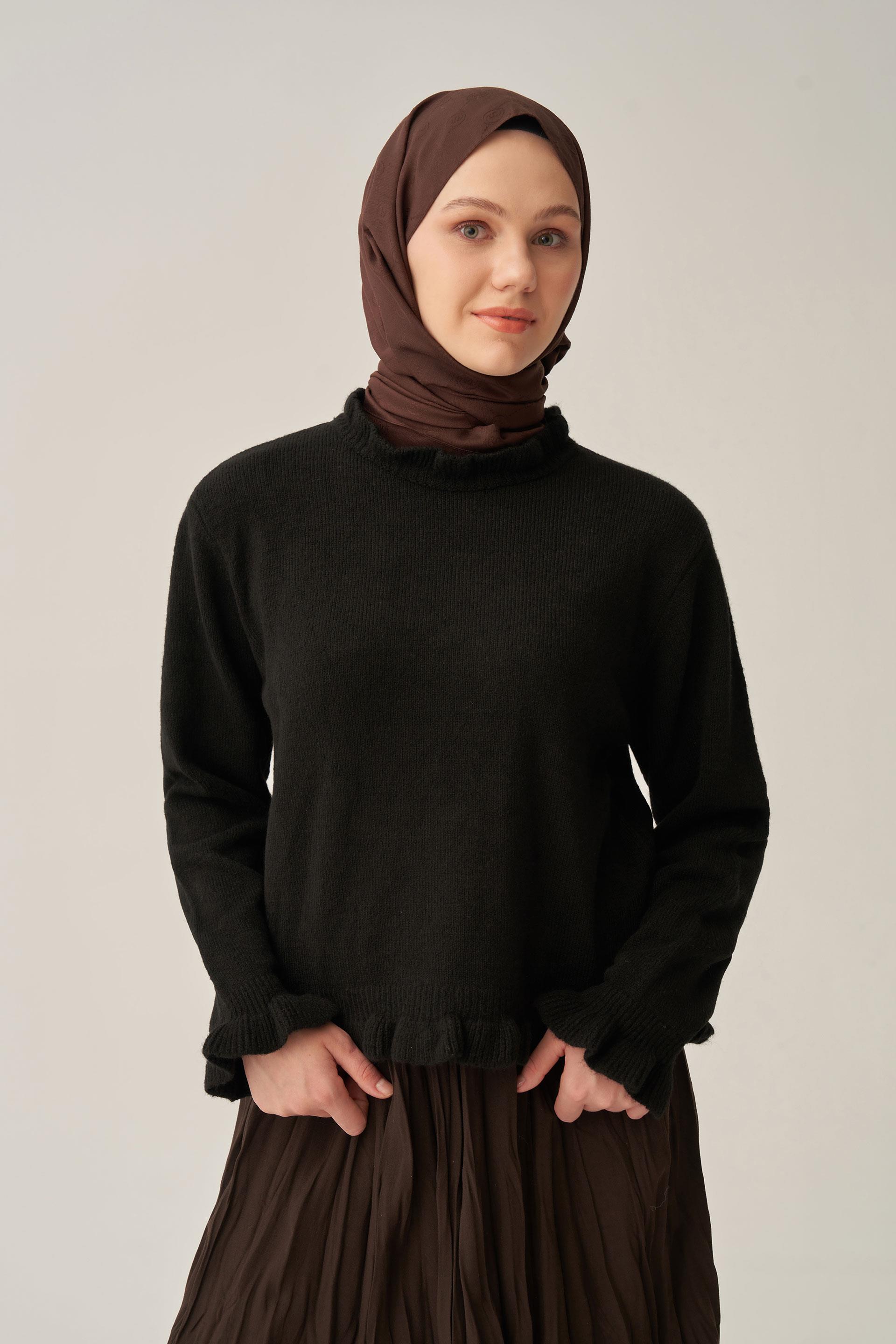 Siyah-Yakası Fırfırlı  Kısa Kazak