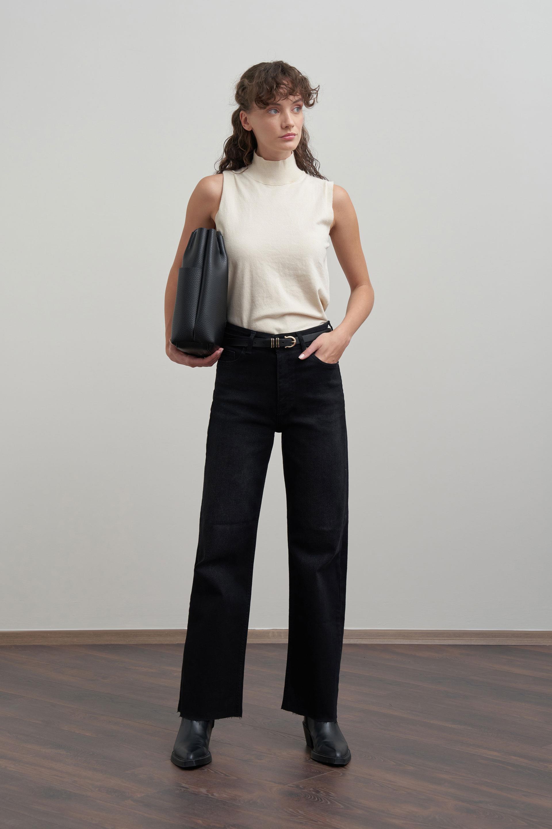 Siyah-Yüksek Bel Geniş Paça Kot Pantolon