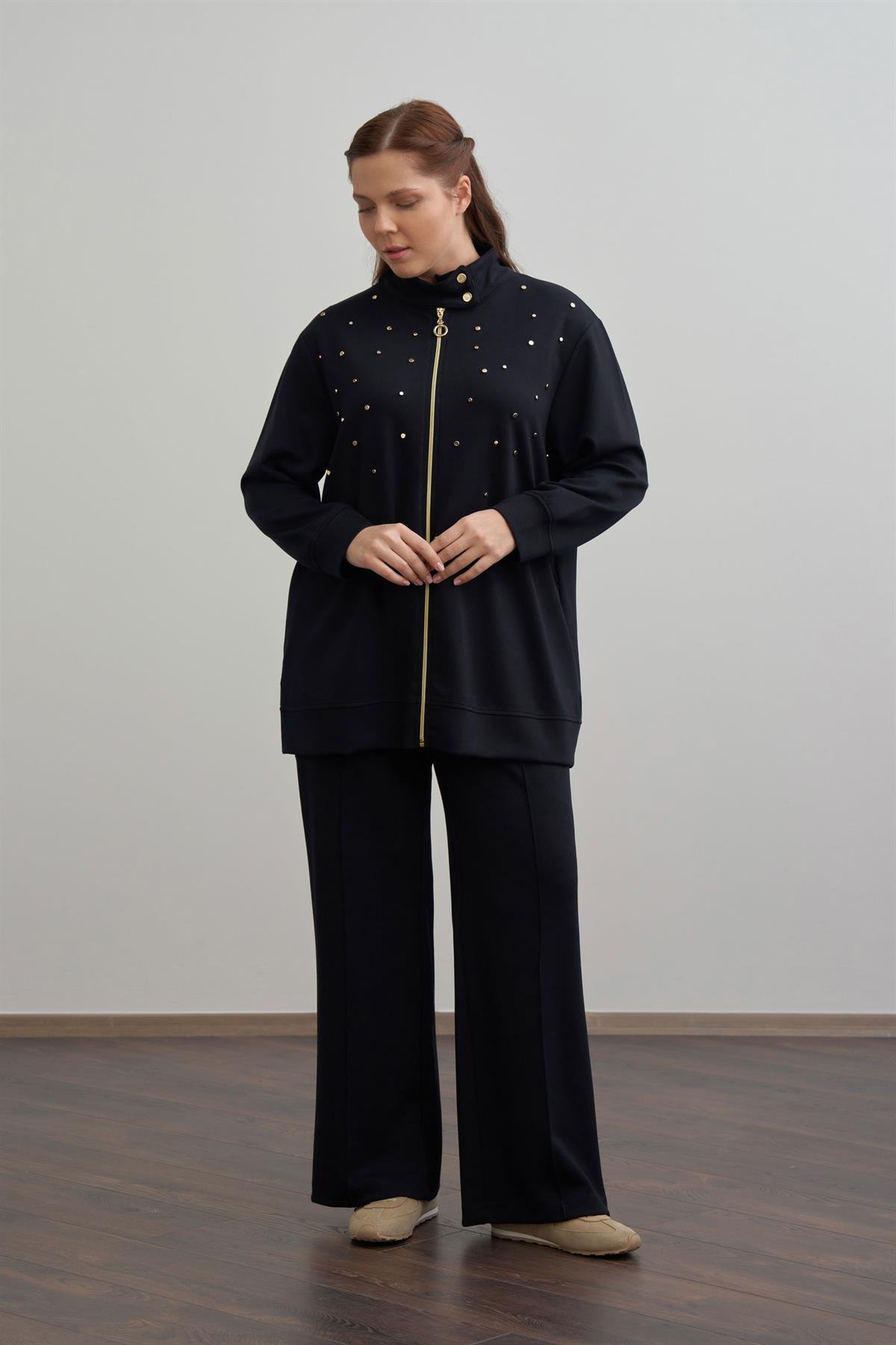 Siyah-Yumuşak Dokulu Büyük Beden Droplu Eşofman Takımı