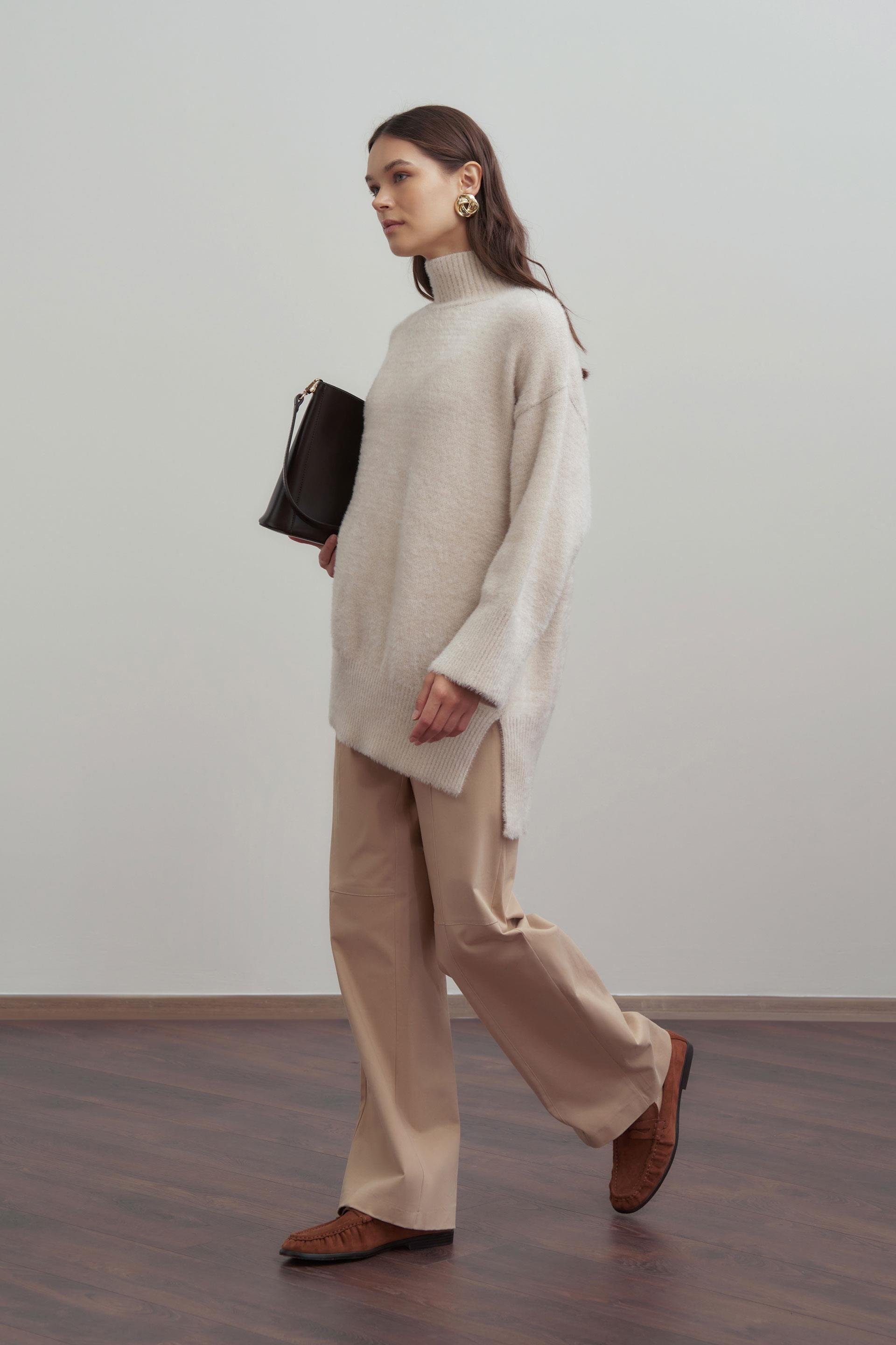 Taş-Balıkçı Yaka Sakal İplik Triko Kazak (W55046A0)
