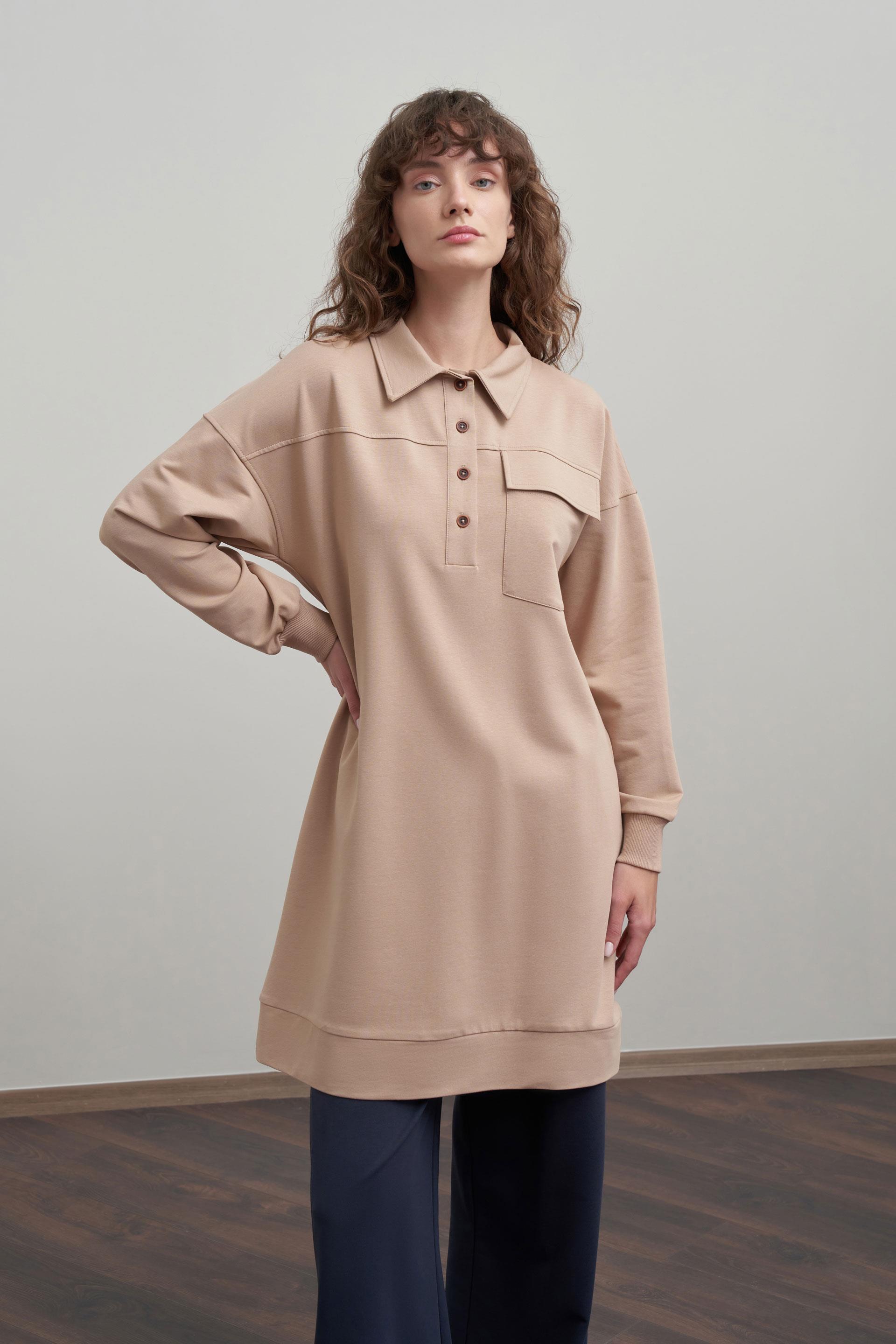 Vizon-Pamuklu Cep Detaylı Tunik (B52352A0)