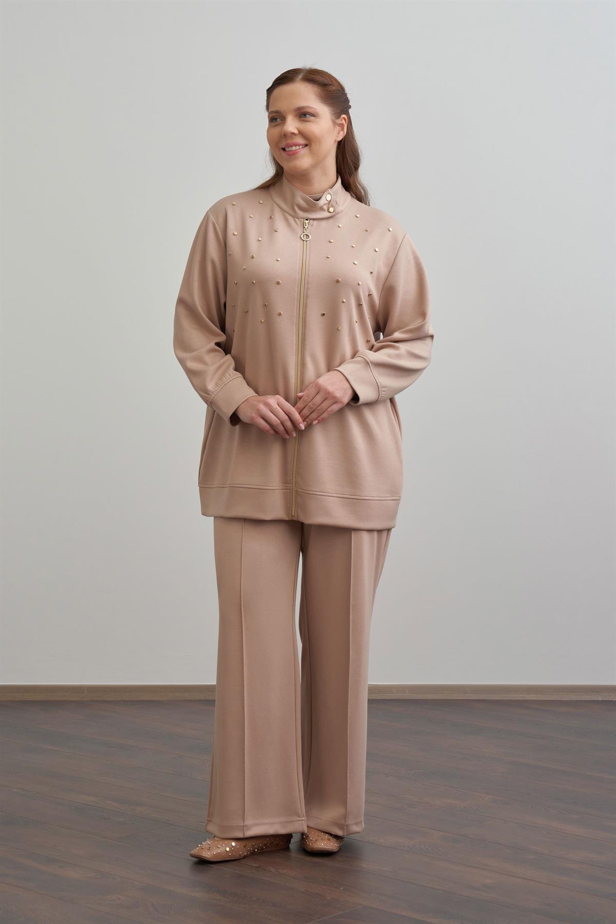 Şıklığı detaylarda arayanlara özel Vizon-Yumuşak Dokulu Büyük Beden Droplu Eşofman Takımı ile zarif bir görünüm yakalayın. Günlük ve özel kombinler için ideal tasarım ALLDAY’de!