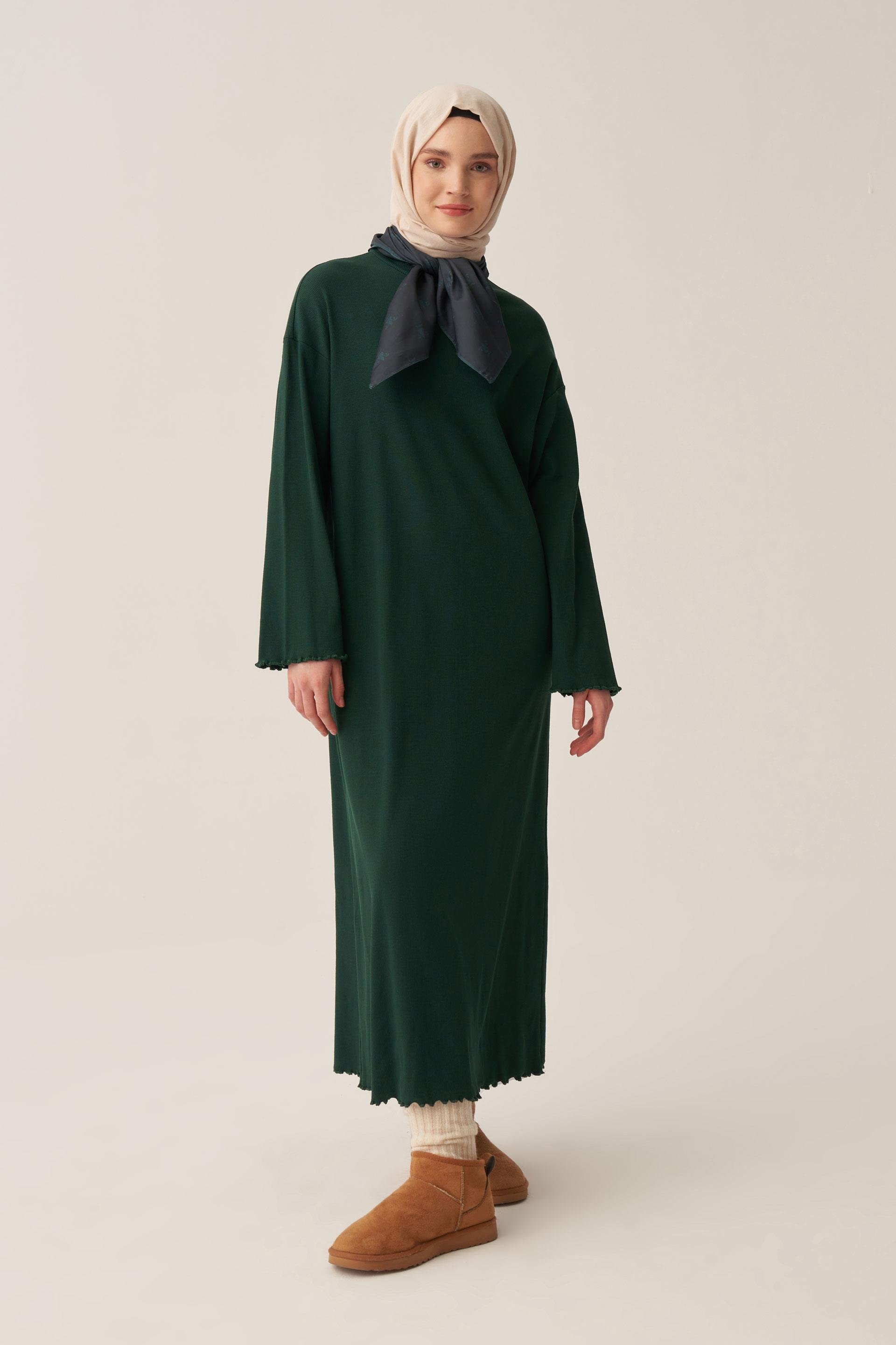 Zümrüt-Fırfır Detaylı Kaşkorse Elbise (W60189A0)